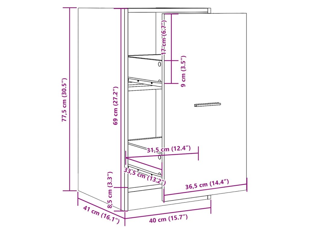 - Celkové rozměry: 40 x 41 x 77,5 cm (Š x H x V)