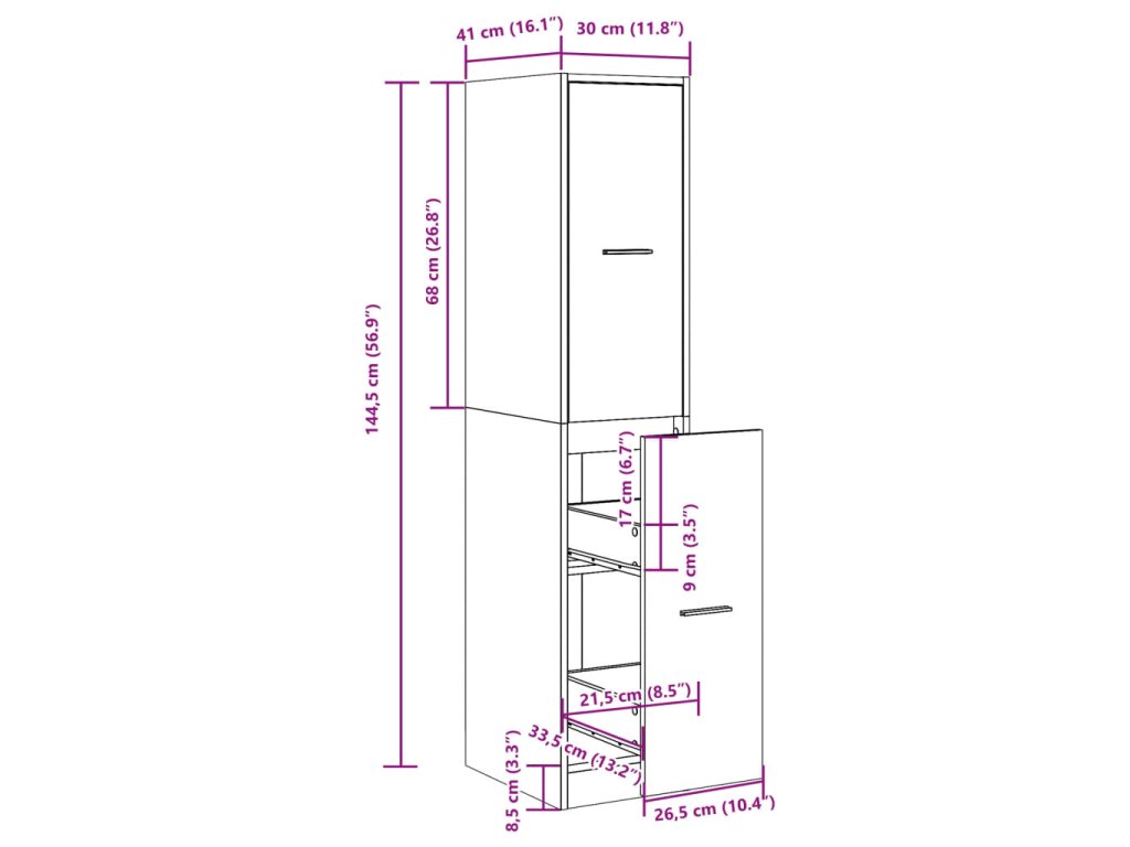 - Celkové rozměry: 30 x 41 x 144,5 cm (Š x H x V)