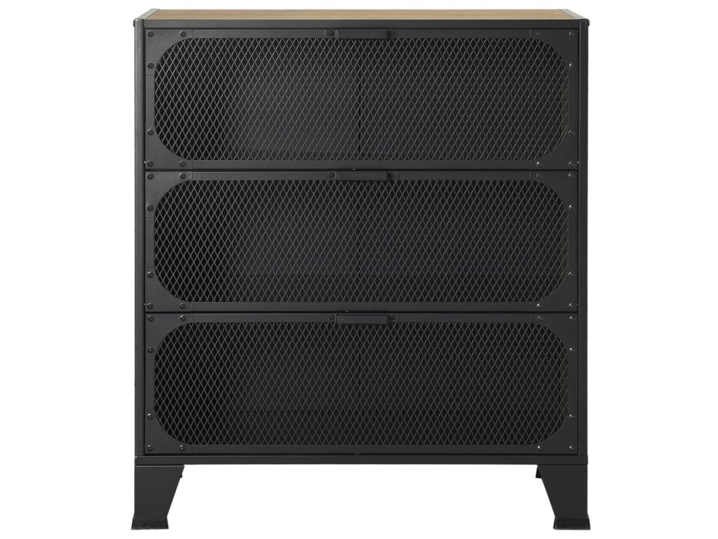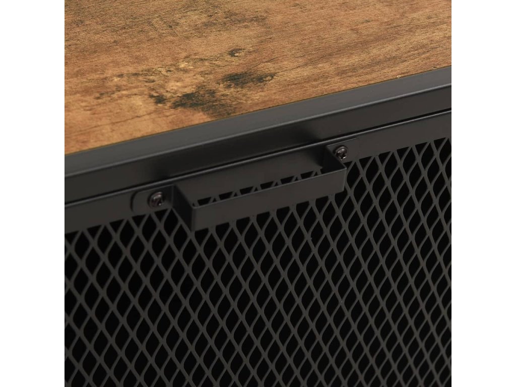 Tato úložná skříň je vyrobena z kovu a MDF, takže je pevná a stabilní. Uvnitř má 2 police, které poskytují dostatek prostoru pro přehledné uložení DVD, multimediálních zařízení, knih a drobných nezbytností, které chcete mít po ruce. Tato skříň s kováním a mřížkovými dvířky dodá vašemu obývacímu pokoji nebo ložnici městský industriální nádech. Navíc se snadno čistí vlhkým hadříkem.