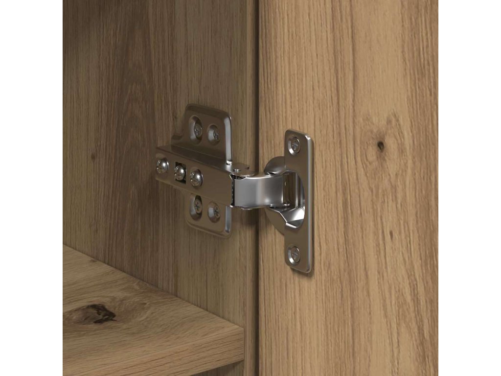 - Funkční prvky: Uvnitř najdete praktické police pro různorodé věci, od nádobí po dekorace. Dveře na pantech se snadno otevírají a umožňují rychlý přístup k vašim věcem. Všechno dohromady dává úložnému prostoru potřebnou organizaci bez ztráty stylu.