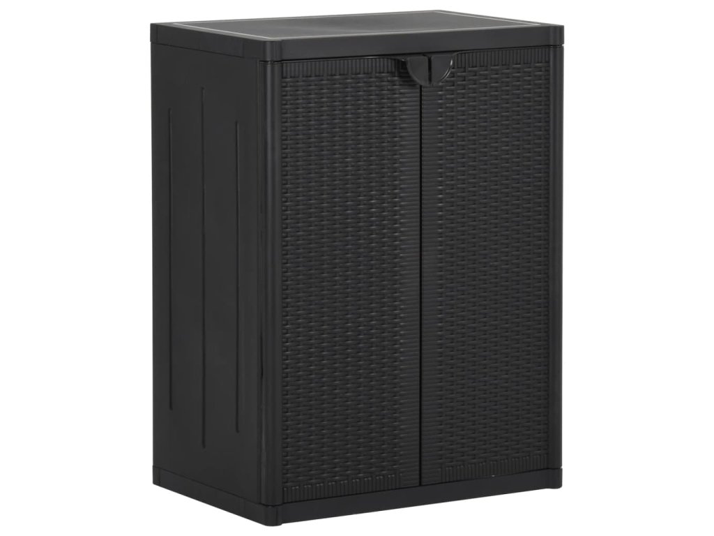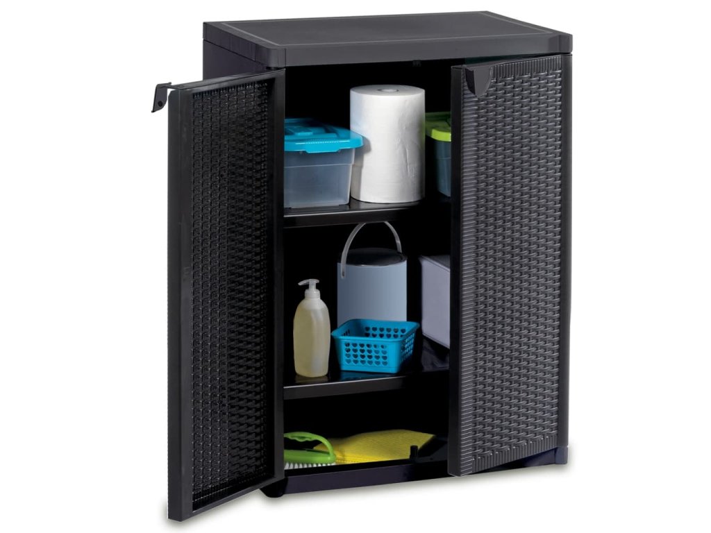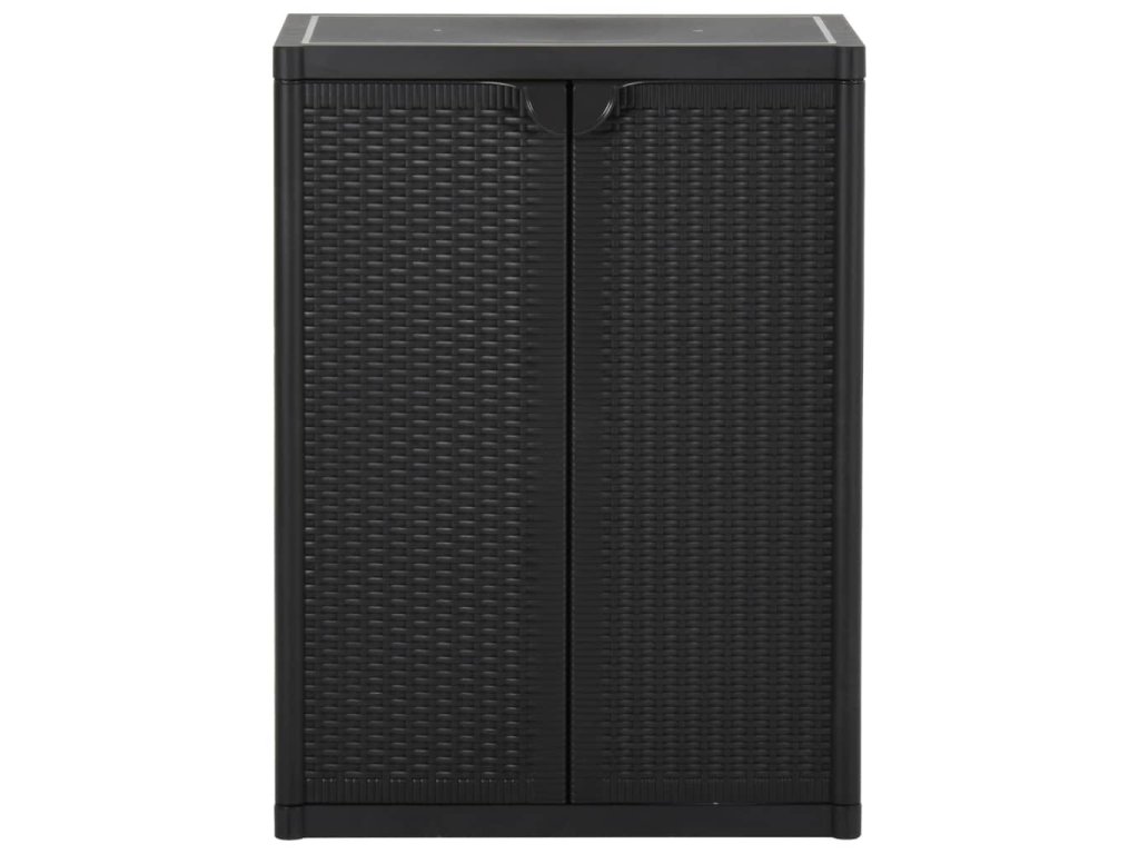 Tento úložný box je vyrobený ze 100% PP (polypropylenu), takže je odolný a snadno se čistí. Jeho 2 police poskytují dostatek prostoru pro přehledné uspořádání a ukládání vašich nezbytností, jako jsou utěrky, prací prostředky, kartáče a další. Všestranná skříň splní například na terase všechny vaše požadavky.