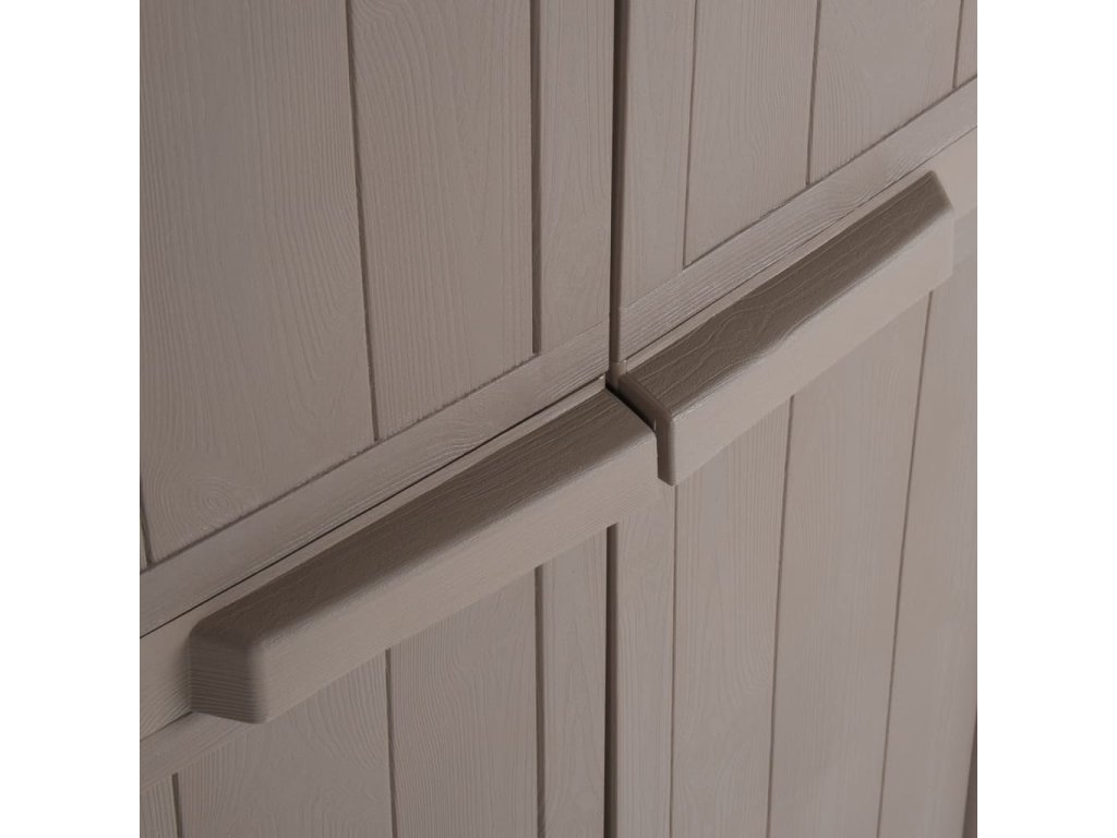 Tento úložný box je vyrobený ze 100% PP (polypropylenu), takže je odolný a snadno se čistí. Jeho 4 police poskytují dostatek prostoru pro přehledné uspořádání a ukládání vašich nezbytností, jako jsou utěrky, prací prostředky, kartáče a další. Všestranná skříň splní například na terase všechny vaše požadavky.