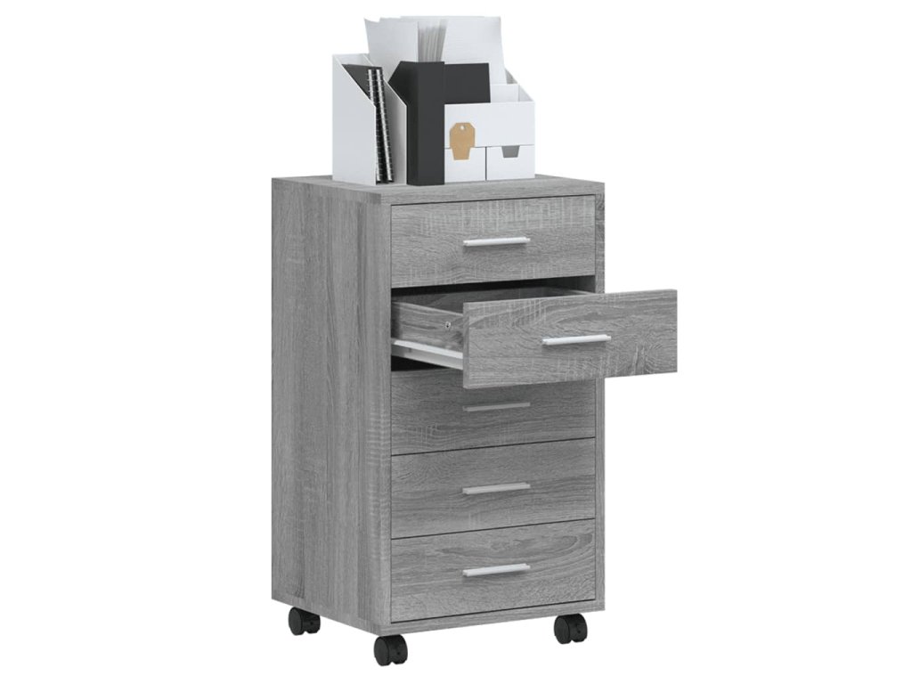 - Dostatek úložného prostoru: Skříňka má 5 zásuvek, které poskytují dostatek úložného prostoru pro dokumenty, sešity, pera, kancelářské sponky, klíče a další kancelářské potřeby.