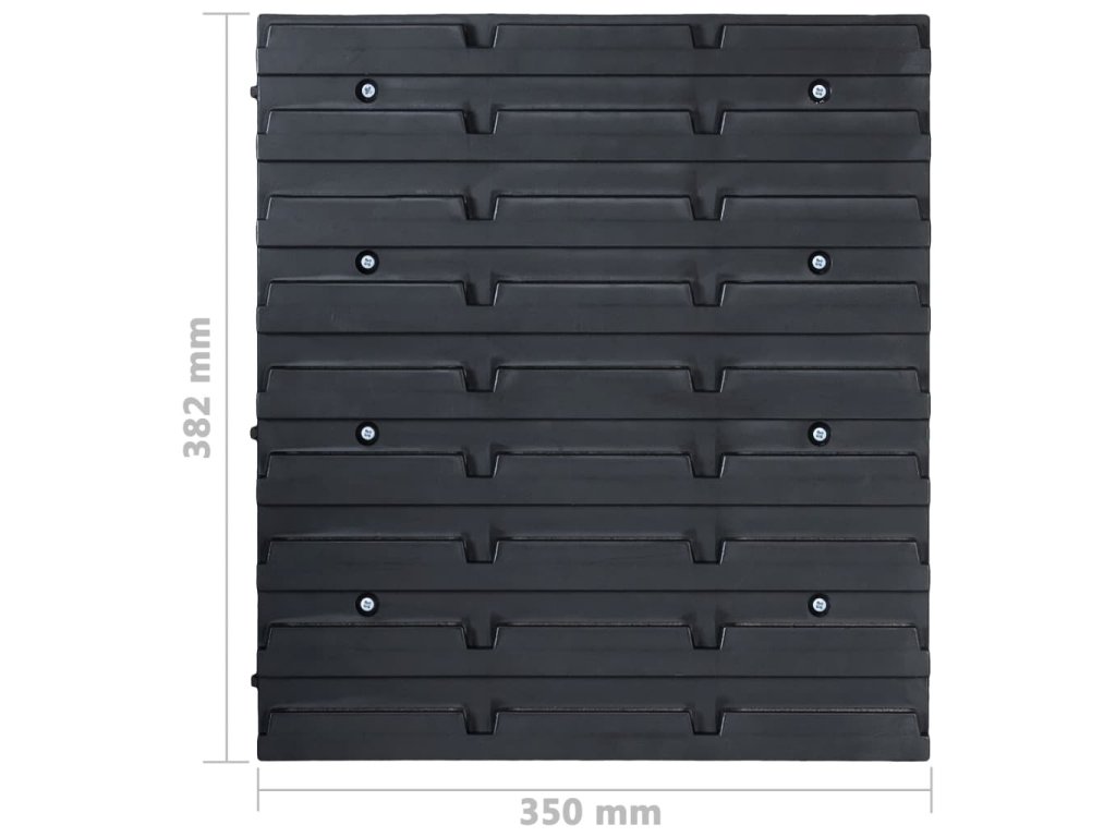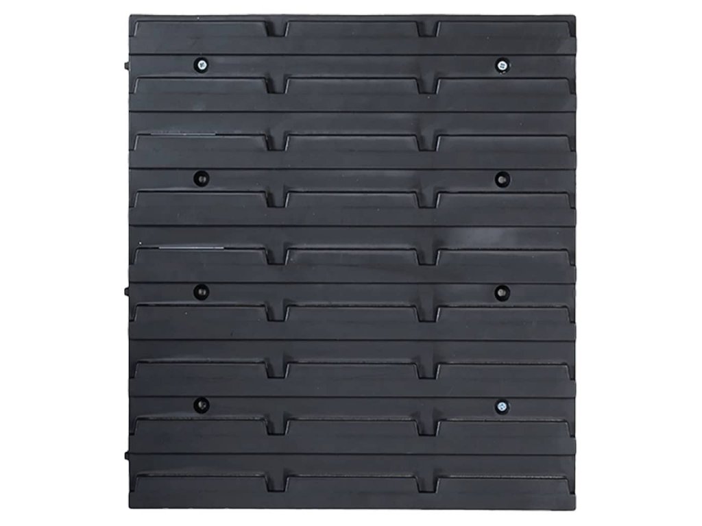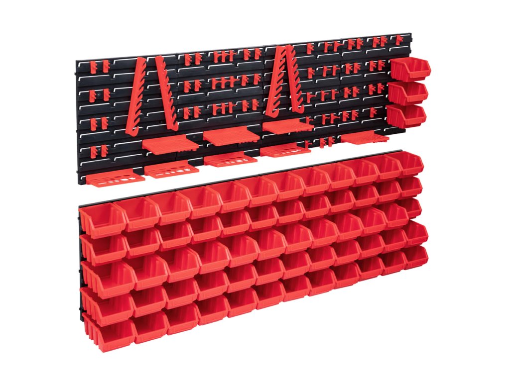 Tyto funkční panely se stohovatelnými boxy nabízí celou řadu možností pro ukládání malých součástek, jako jsou šrouby, hřebíky, matice, objímky, spojky apod. Do 8 pevných nástěnných panelů jsou připevněné držáky a upínače pro nejrůznější typy nářadí a 63 zásobníků, které si lze označit, abyste měli lepší přehled o jejich obsahu. Jednotlivé boxy můžete také samostatně vytahovat a naskládat je na sebe. Sadu panelů na nářadí je možné libovolně rozšiřovat a dá se snadno namontovat na stěnu garáže nebo kůlny. Soupravu skladovacích zásobníků si můžete přizpůsobit dle vlastních potřeb.