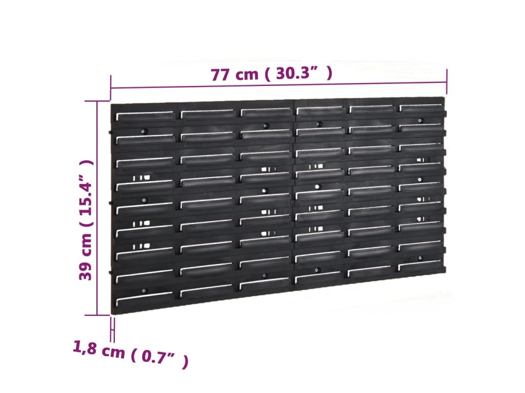 Tato praktická sada dílenských polic se skládá z nástěnných panelů a úložných boxů. Je to perfektní volba, jak si udržet na pracovišti pořádek a přitom mít malé součástky po ruce!