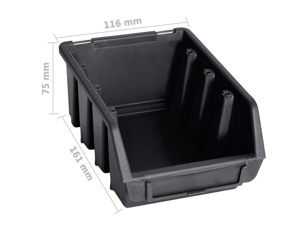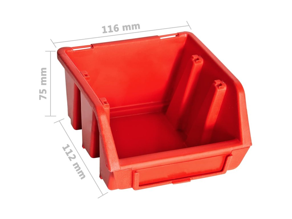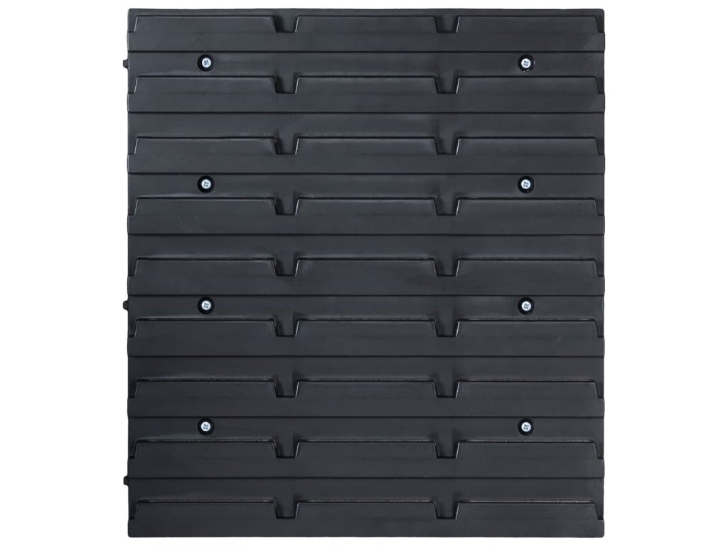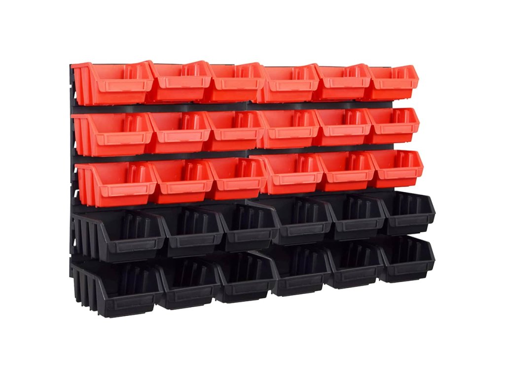 Tento funkční držák se stohovatelnými boxy nabízí celou řadu možností pro uložení malých součástek, jako jsou šrouby, hřebíky, matice, objímky, spoje apod. Do 2 pevných nástěnných panelů je zasazených 30 zásobníků, které si lze označit, abyste měli lepší přehled o jejich obsahu. Jednotlivé boxy můžete také samostatně vytahovat a naskládat je na sebe. Úložnou sadu je možné libovolně rozšiřovat a dá se snadno namontovat na stěnu garáže nebo kůlny. Soupravu skladovacích zásobníků si můžete přizpůsobit dle vlastních potřeb.
