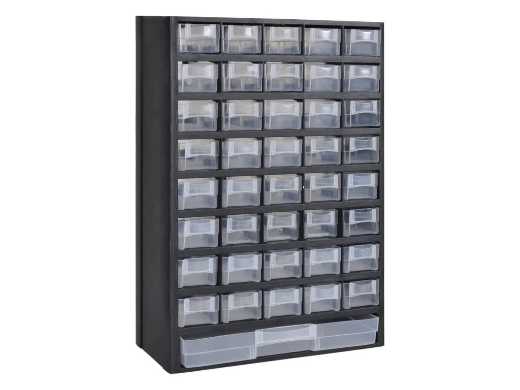 Tento plastový box na nářadí vám přijde vhod, pokud si v dílně chcete udělat pořádek. Disponuje 40 malými zásuvkami a 1 velkou zásuvkou.