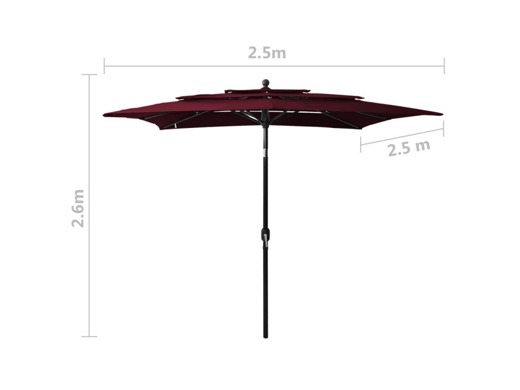 3stupňový zahradní slunečník s hliníkovou tyčí bordó 2,5x2,5 m 313840