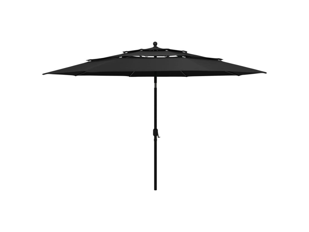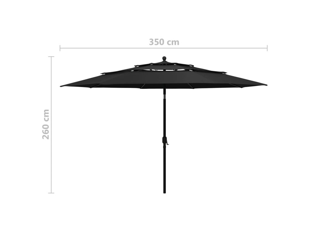 3stupňový zahradní slunečník s hliníkovou tyčí černý 3,5 m 313882
