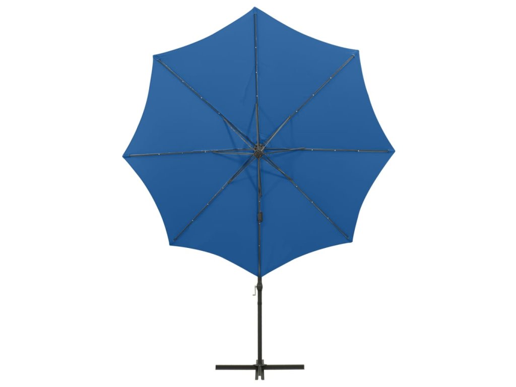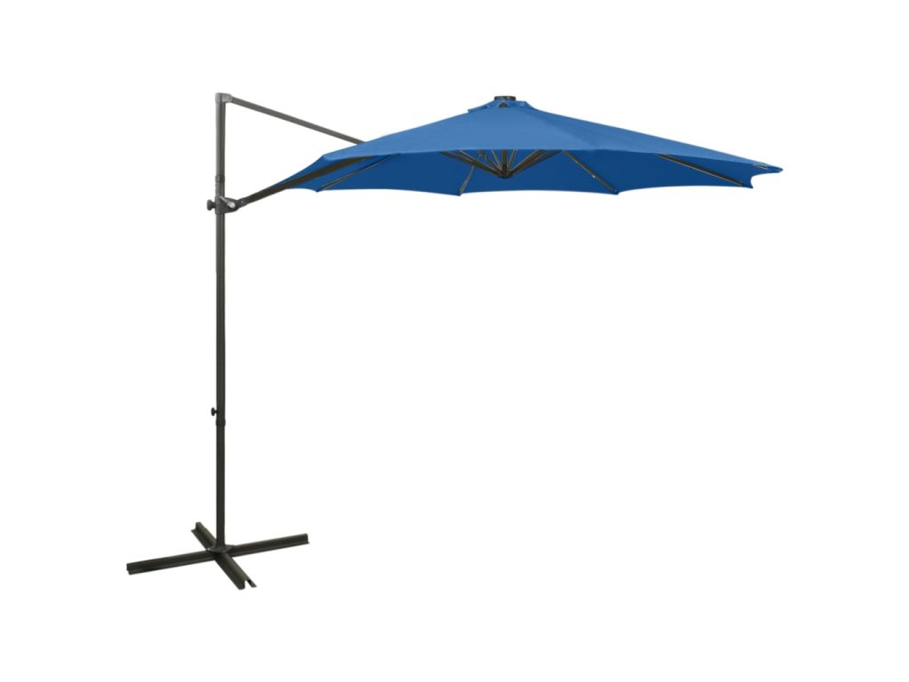 Boční zahradní slunečník s tyčí a LED azurově modrý 300 cm 312341