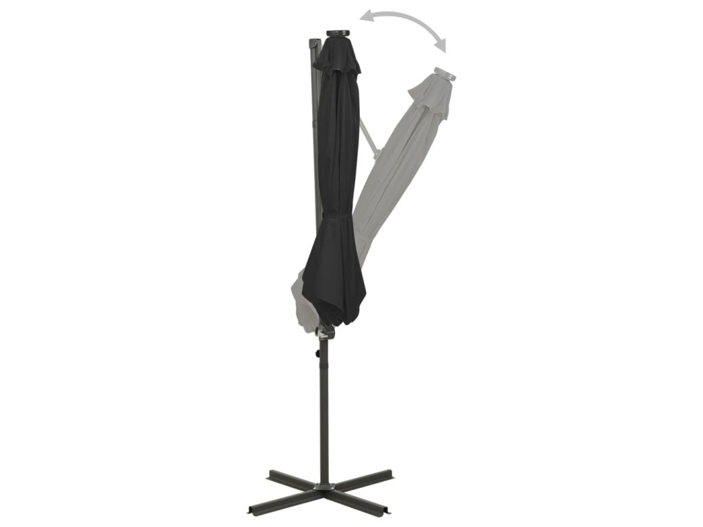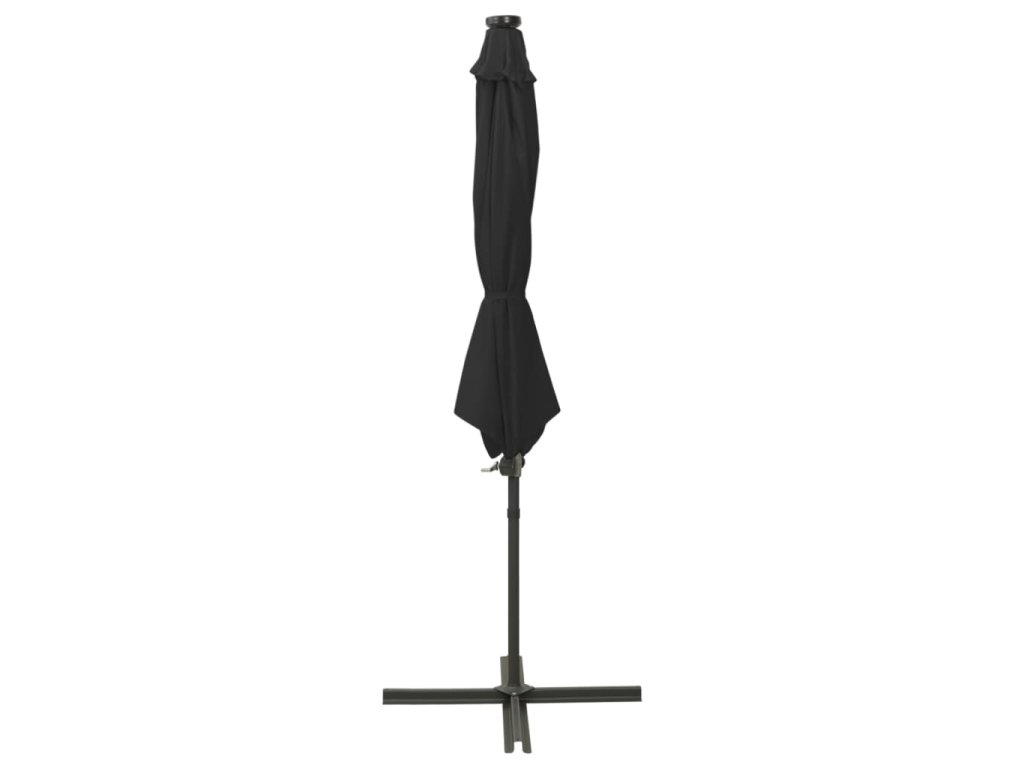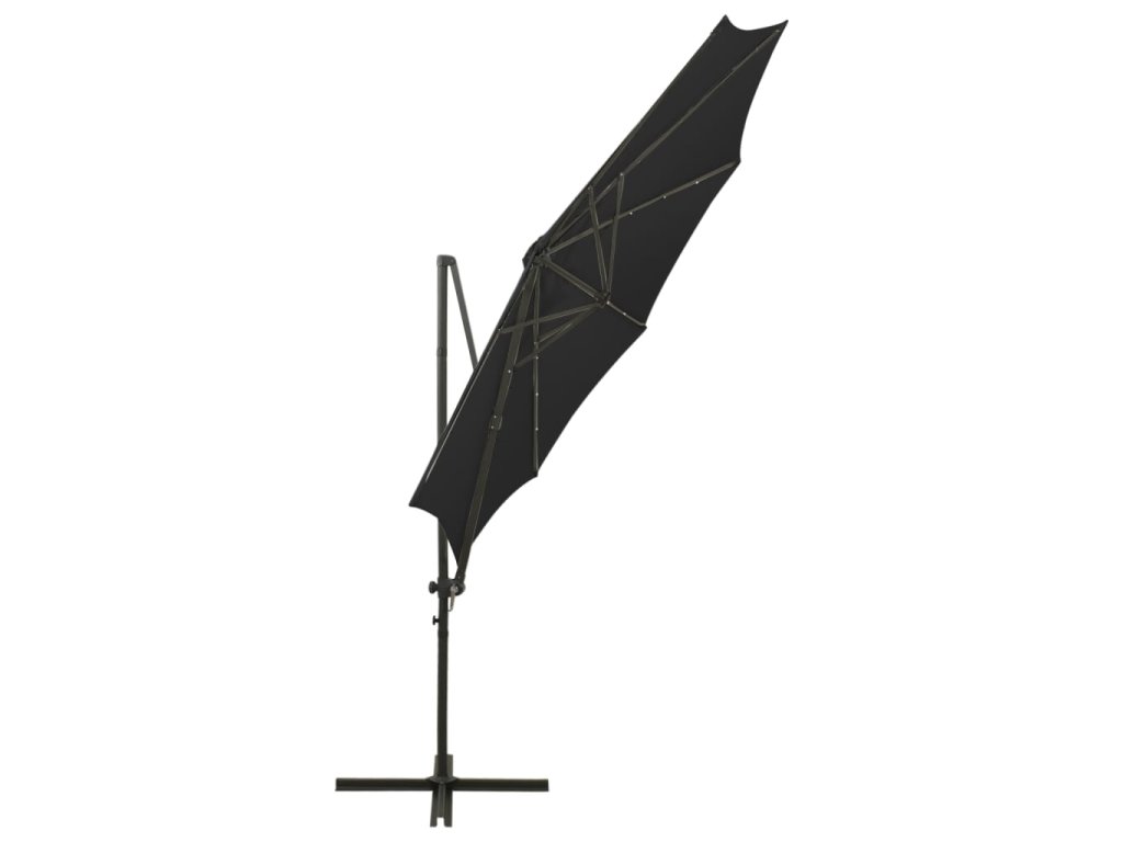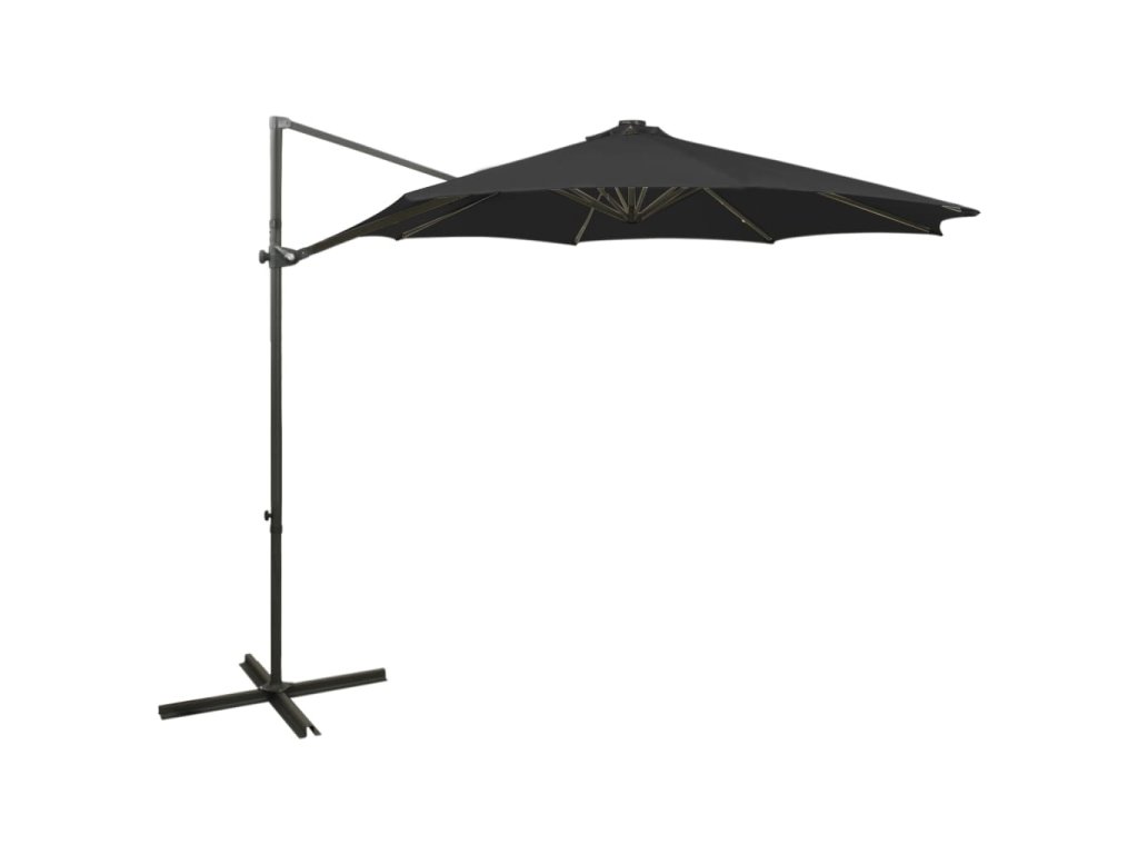 Boční zahradní slunečník s tyčí a LED světly černý 300 cm 312340