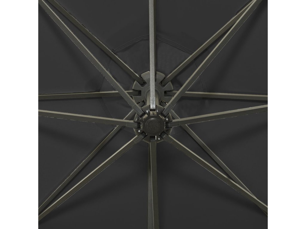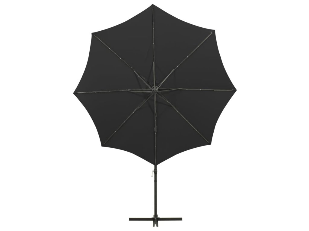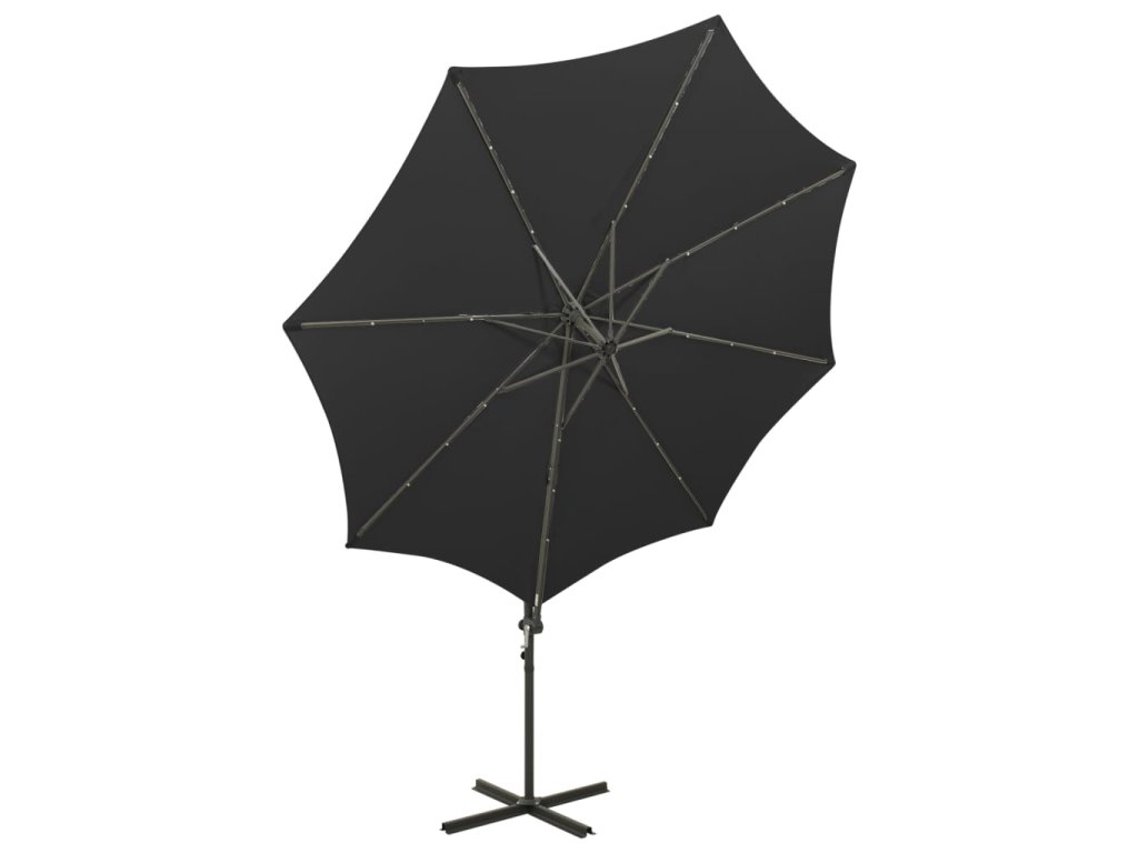 Potah slunečníku je vyrobený z neblednoucího polyesteru chránícího před UV zářením a poskytuje vám optimální ochranu před sluncem a snadno se čistí. Slunečník je vybaven pevnou křížovou základnou, která zaručuje lepší stabilitu. Exkluzivní konstrukce vám umožní zahradní slunečník naklánět a otáčet o 360 stupňů, aby blokoval slunce v jakémkoli úhlu. Silná hliníková tyč s 8 žebry slunečníku zajišťuje stabilitu a dlouhou životnost. Náš zahradní slunečník disponuje klikovým mechanismem, což znamená, že se snadno otevírá i zavírá. Terasový slunečník rovněž disponuje 24 LED světly, která po západu slunce osvětlí váš venkovní prostor a vytvoří romantickou atmosféru.