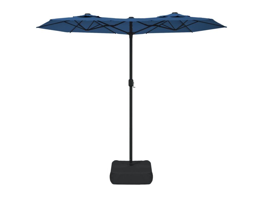 Dvojitý zahradní slunečník s LED azurově modrý 316 x 145 cm 362976