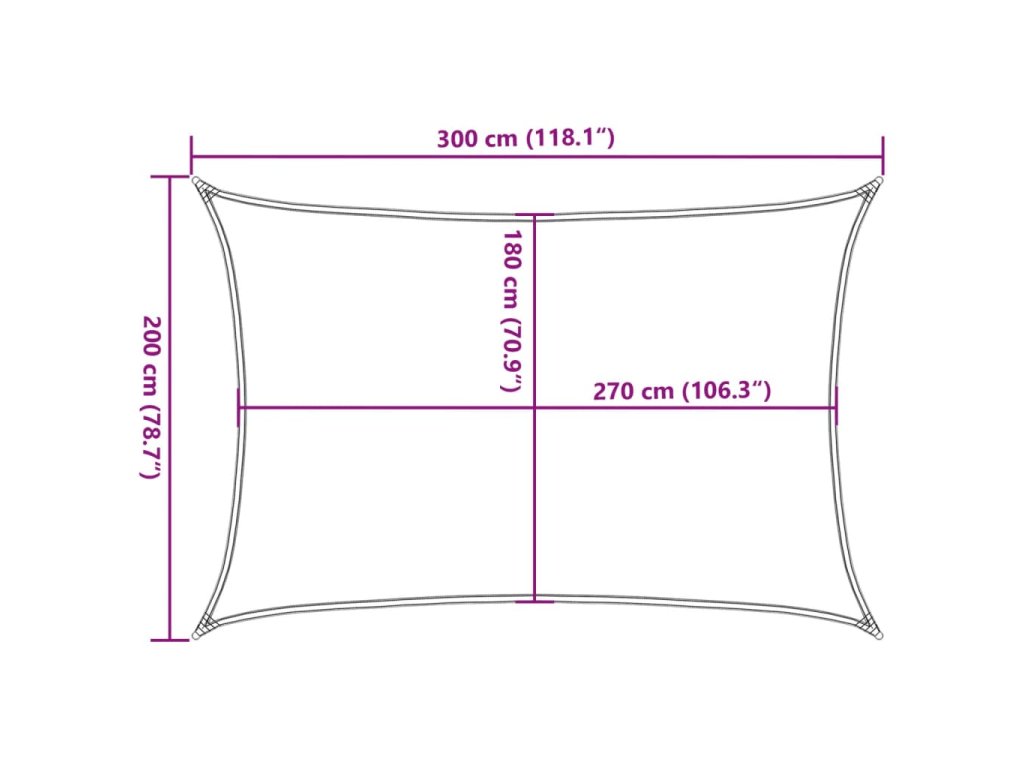 Sluneční plachta vyrobená ze 100% HDPE (vysokohustotní polyethylen) vás chrání před přímým slunečním zářením, umožňuje dostatečný průchod vzduchu a je propustná pro vodu. HDPE je speciálně upraven, takže je odolný proti plísním a UV záření. Slunečník se snadno sestavuje pomocí nerezových upevňovacích prvků na každém rohu a přiložených lanek.