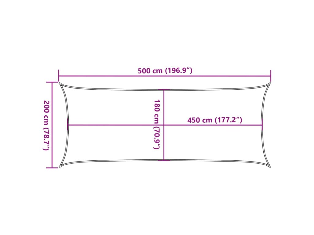 Sluneční plachta vyrobená ze 100% HDPE (vysokohustotní polyethylen) vás chrání před přímým slunečním zářením, umožňuje dostatečný průchod vzduchu a je propustná pro vodu. HDPE je speciálně upraven, takže je odolný proti plísním a UV záření. Slunečník se snadno sestavuje pomocí nerezových upevňovacích prvků na každém rohu a přiložených lanek.