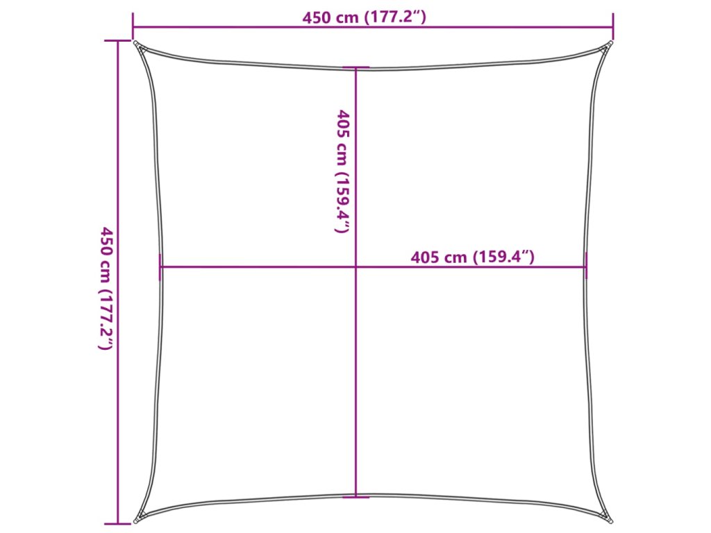 Sluneční plachta vyrobená ze 100% HDPE (vysokohustotní polyethylen) vás chrání před přímým slunečním zářením, umožňuje dostatečný průchod vzduchu a je propustná pro vodu. HDPE je speciálně upraven, takže je odolný proti plísním a UV záření. Slunečník se snadno sestavuje pomocí nerezových upevňovacích prvků na každém rohu a přiložených lanek.