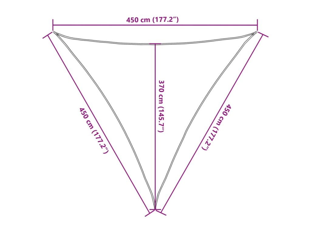 Sluneční plachta vyrobená ze 100% HDPE (vysokohustotní polyethylen) vás chrání před přímým slunečním zářením, umožňuje dostatečný průchod vzduchu a je propustná pro vodu. HDPE je speciálně upraven, takže je odolný proti plísním a UV záření. Slunečník se snadno sestavuje pomocí nerezových upevňovacích prvků na každém rohu a přiložených lanek.