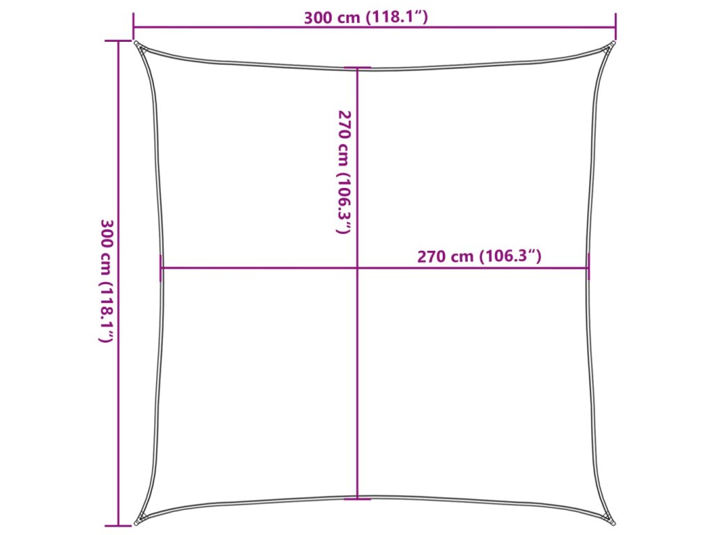 Sluneční plachta vyrobená ze 100% HDPE (vysokohustotní polyethylen) vás chrání před přímým slunečním zářením, umožňuje dostatečný průchod vzduchu a je propustná pro vodu. HDPE je speciálně upraven, takže je odolný proti plísním a UV záření. Slunečník se snadno sestavuje pomocí nerezových upevňovacích prvků na každém rohu a přiložených lanek.