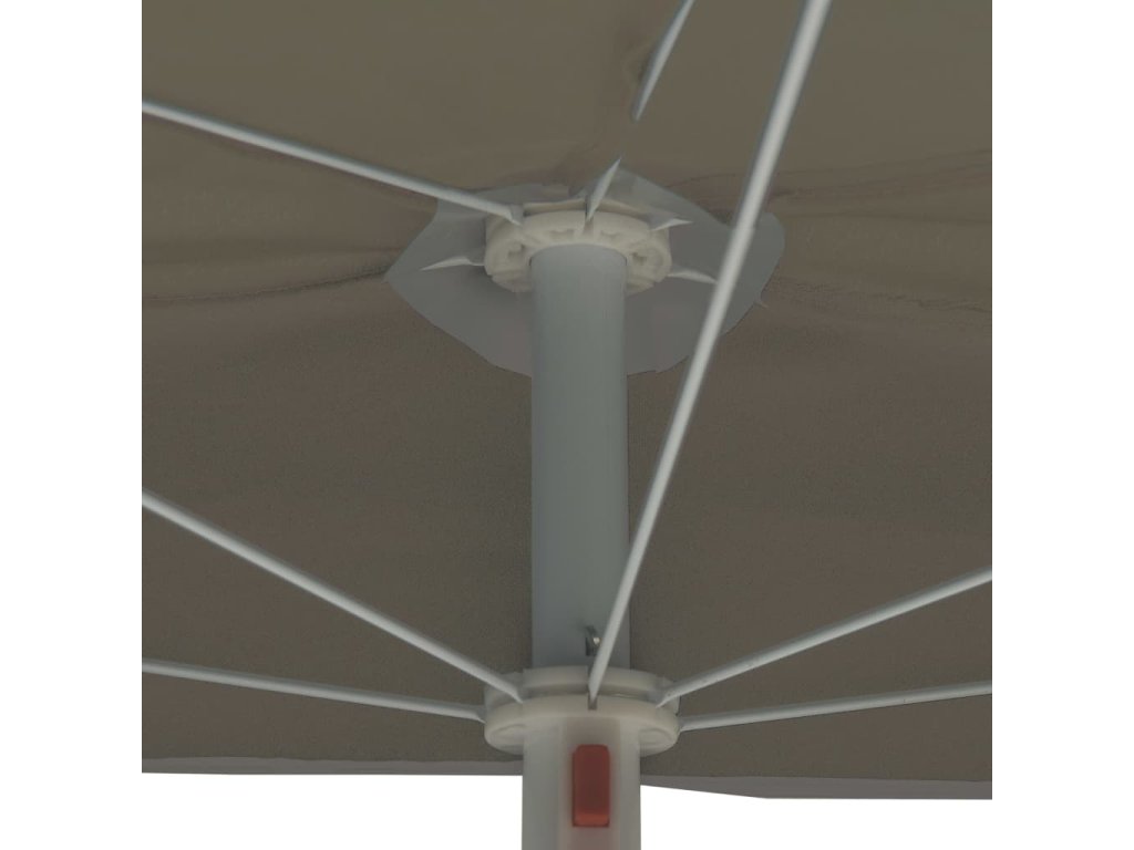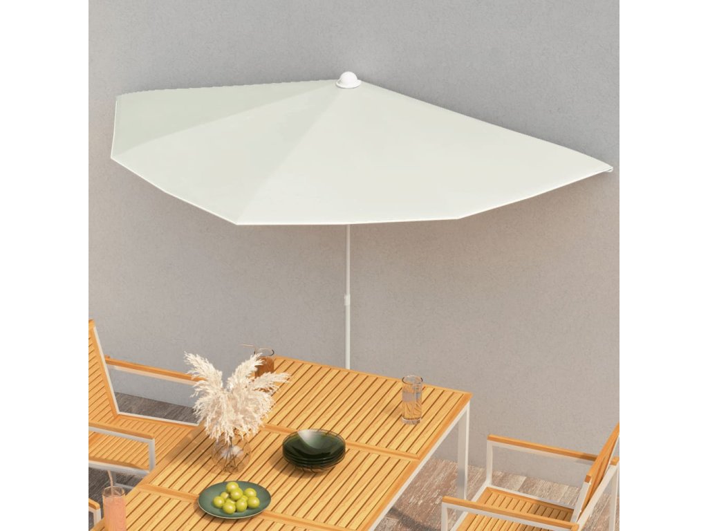 Stříška slunečníku je vyrobená z polyesterové tkaniny, která nepropouští škodlivé UV záření, je odolná vůči blednutí barev a snadno se čistí. Slunečník vám tudíž poskytne optimální ochranu před sluncem. Půlkruhový design dodává slunečníku jedinečné kouzlo. Silná ocelová tyč s 5 robustními ocelovými žebry zajišťuje, že se slunečník nehýbe a hodně toho vydrží. Otevírání i zavírání tohoto zahradního slunečníku je jednoduché.