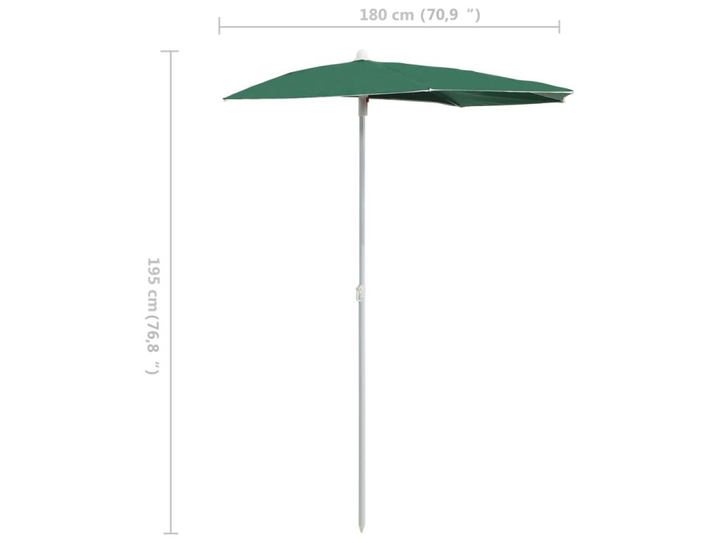 Zahradní půlkruhový slunečník s tyčí 180 x 90 cm zelený 315560