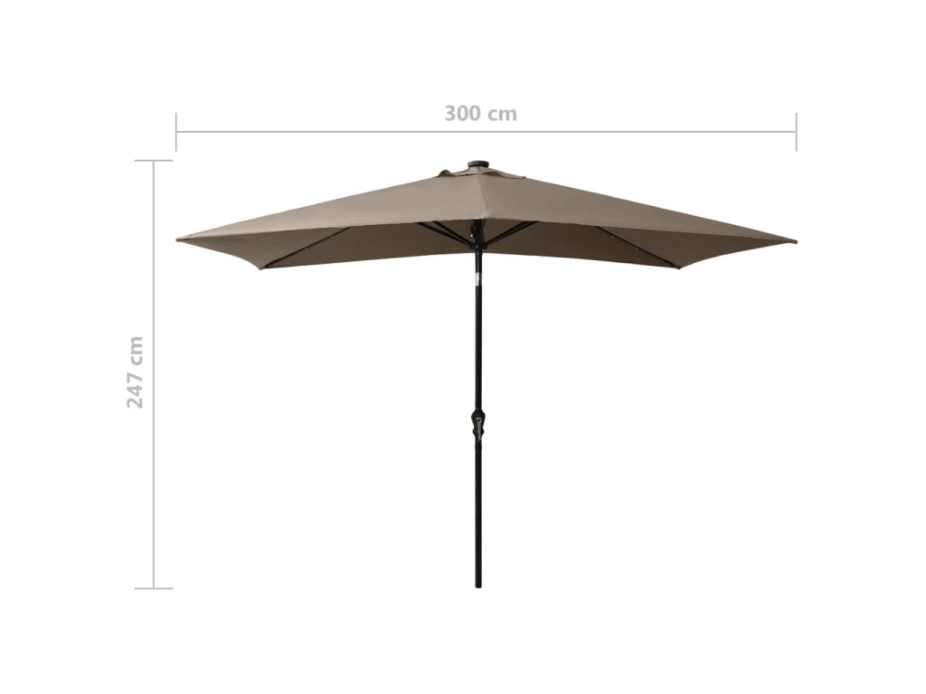 Zahradní slunečník s LED a ocelovou tyčí taupe 2 x 3 m 313789