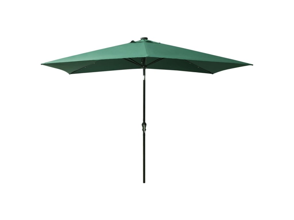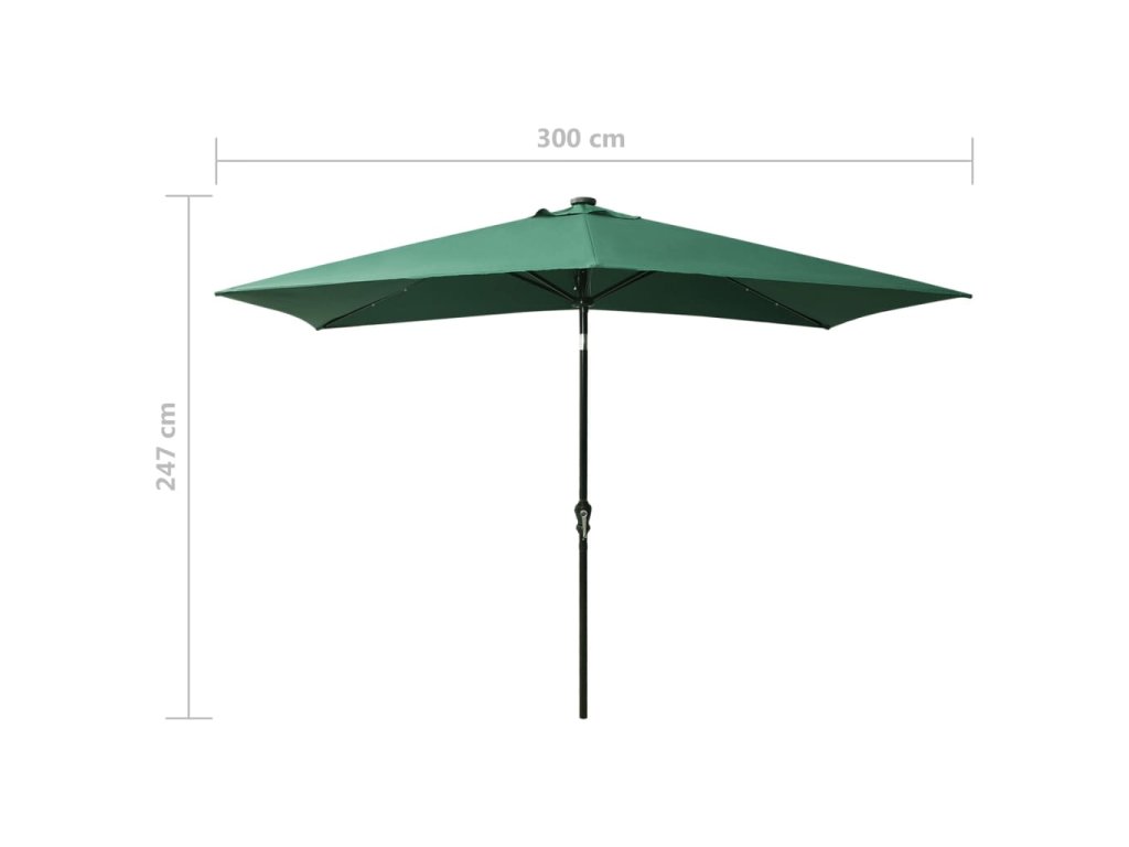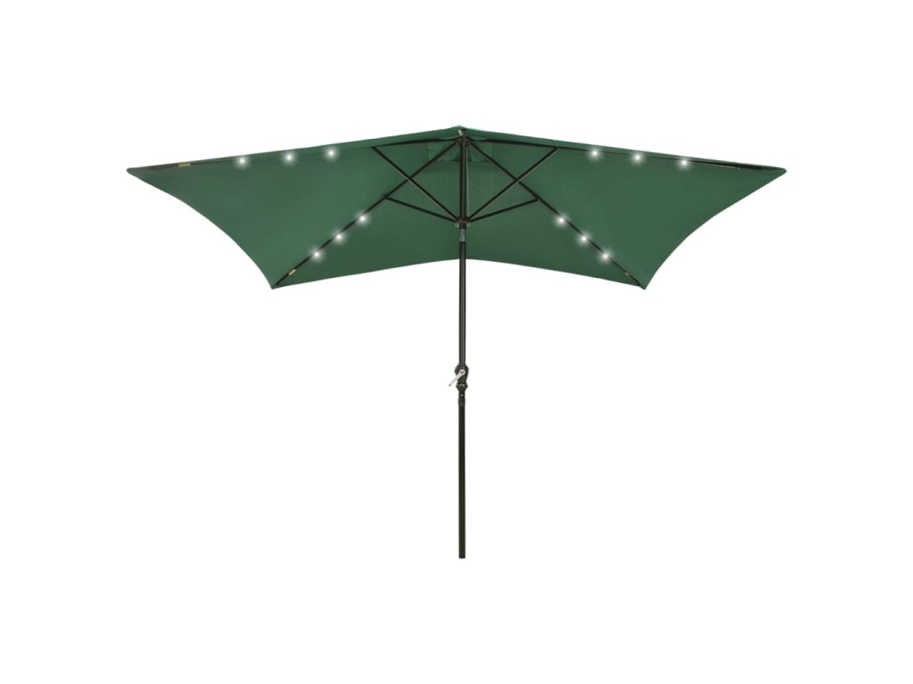 Zahradní slunečník s LED a ocelovou tyčí zelený 2 x 3 m 313786