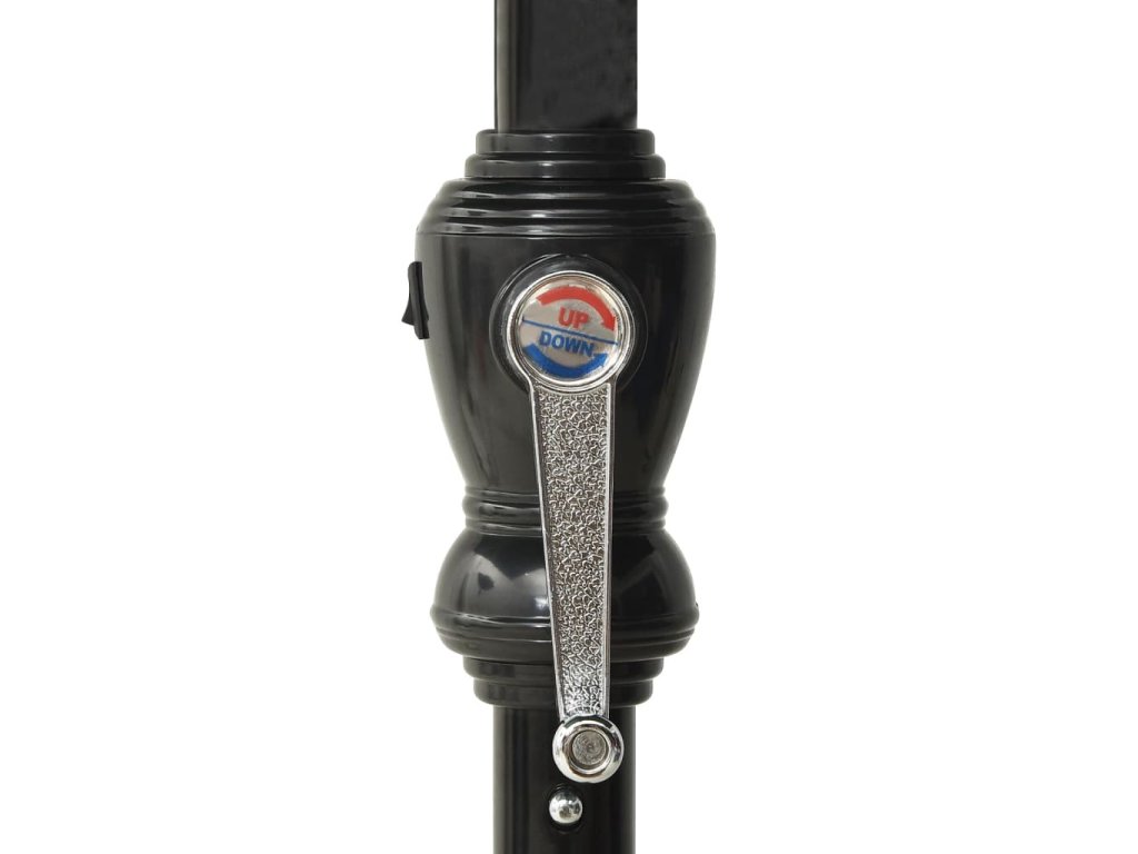 Zahradní slunečník z polyesteru, který je odolný vůči UV záření a blednutí barev, vám dokáže poskytnout optimální ochranu proti slunci. Stabilitu zajišťují práškově lakovaná ocelová tyč a žebra. Slunečník je vybavený klikovým mechanismem a funkcí náklonu, takže je skládací a přenosný. Můžete ho zasadit do svého stávajícího stojanu nebo doprostřed stolů s otvorem na slunečník. Integrovaná LED světla, která jsou napájená solárním panelem, vytváří večer útulnou a romantickou atmosféru.