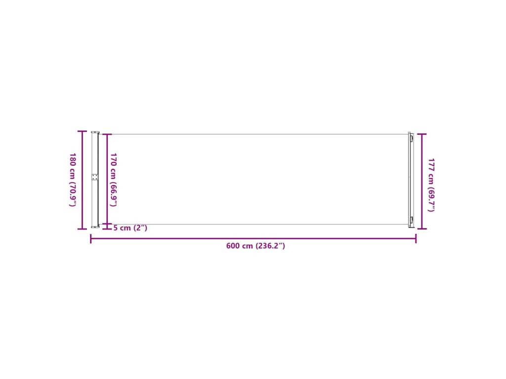 Zatahovací boční markýza 180 x 600 cm černá 317964