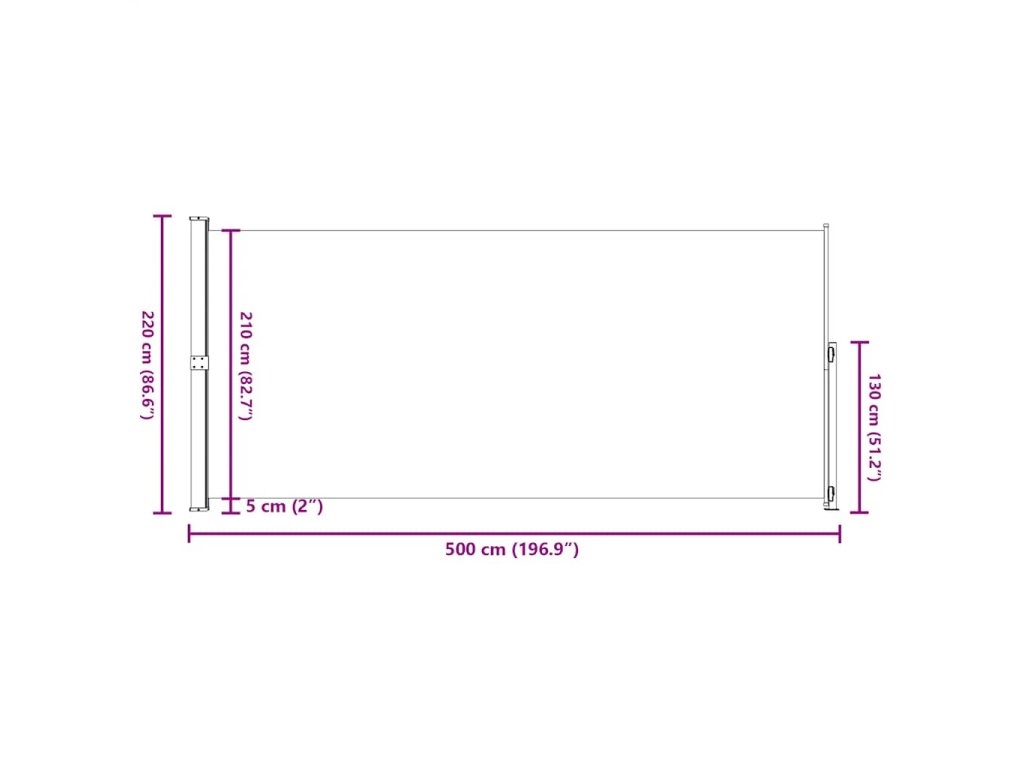Zatahovací boční markýza 220 x 500 cm šedá 313431