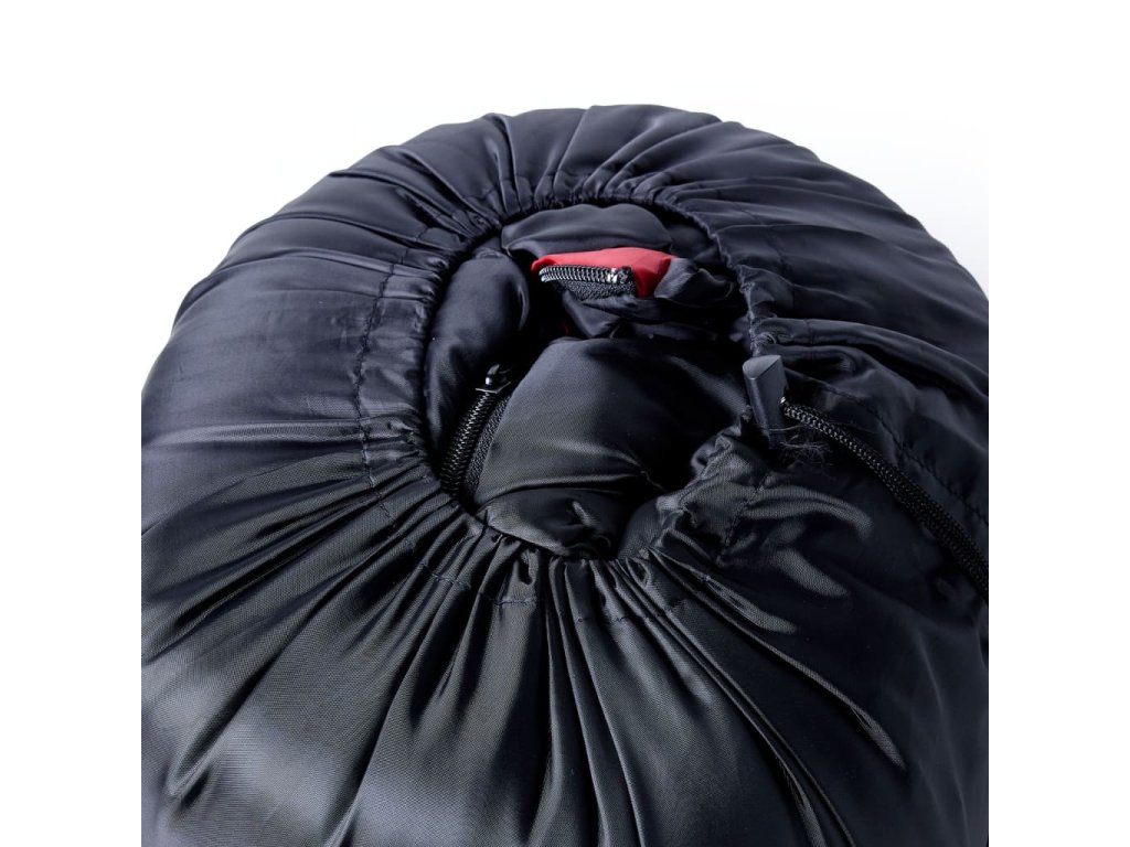 - Pohodlí a teplo: Spací pytel je vyplněn polypropylenem a kapuci si můžete stáhnout šňůrkou kolem hlavy, což vám zajistí pohodlný spánek v teple.