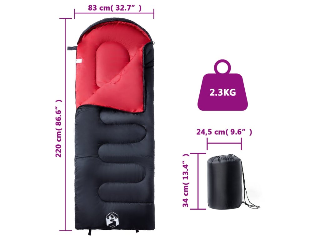 - Rozměry spacího pytle: 220 x 83 cm (D x Š)