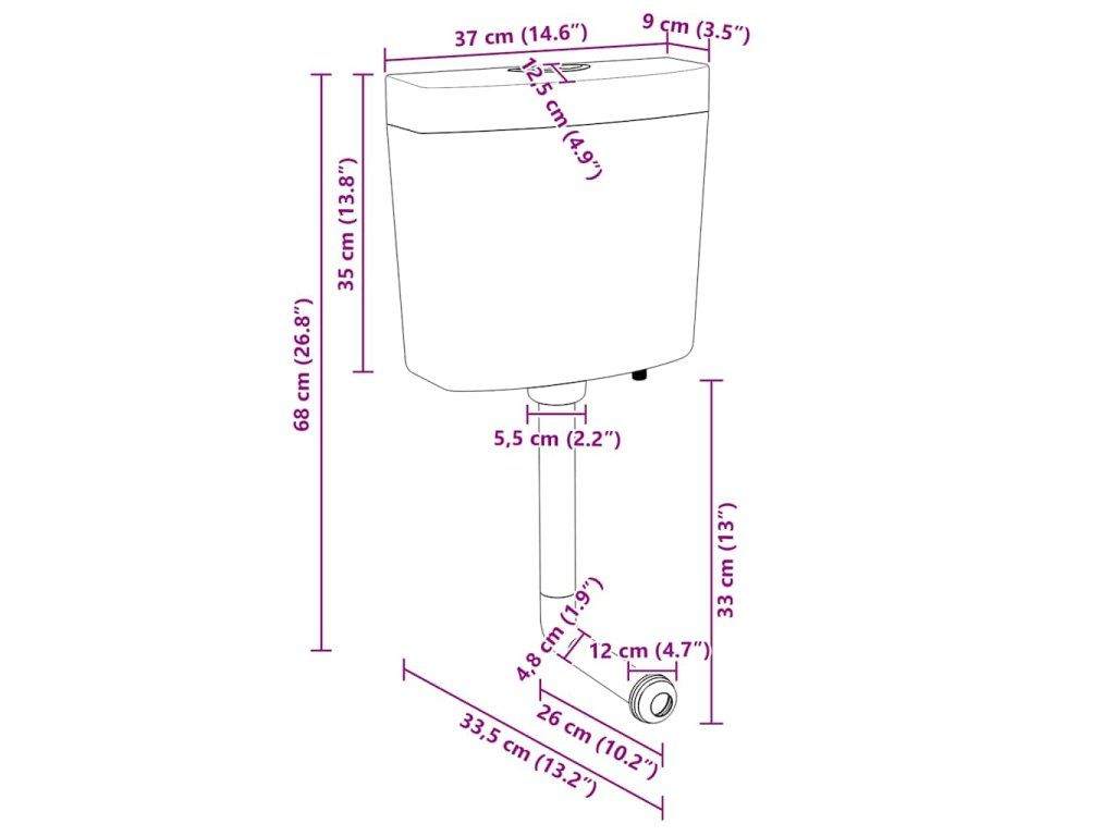 Tato dobře navržená splachovací nádržka se také snadno instaluje a veškeré montážní příslušenství je k ní přiloženo. Upozorňujeme, že otvor pro přívod vody je na spodní straně, nikoli na boku.