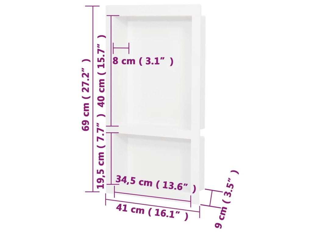 Nika do sprchového koutu 2 přihrádky lesklá bílá 41 x 69 x 9 cm 151398