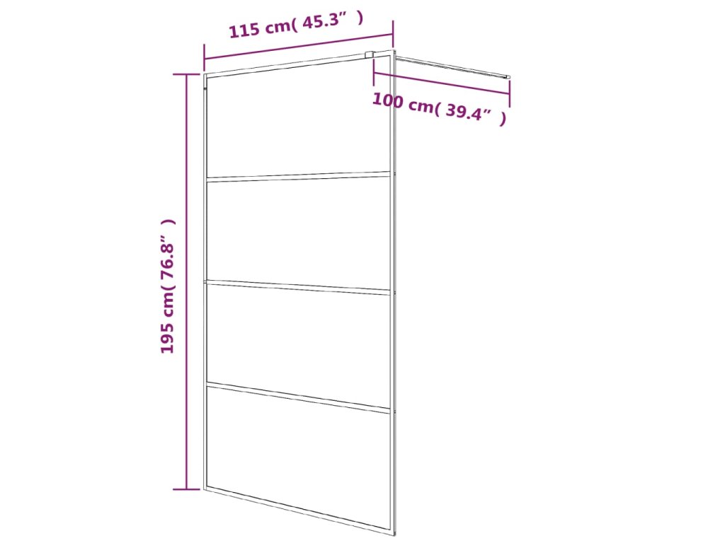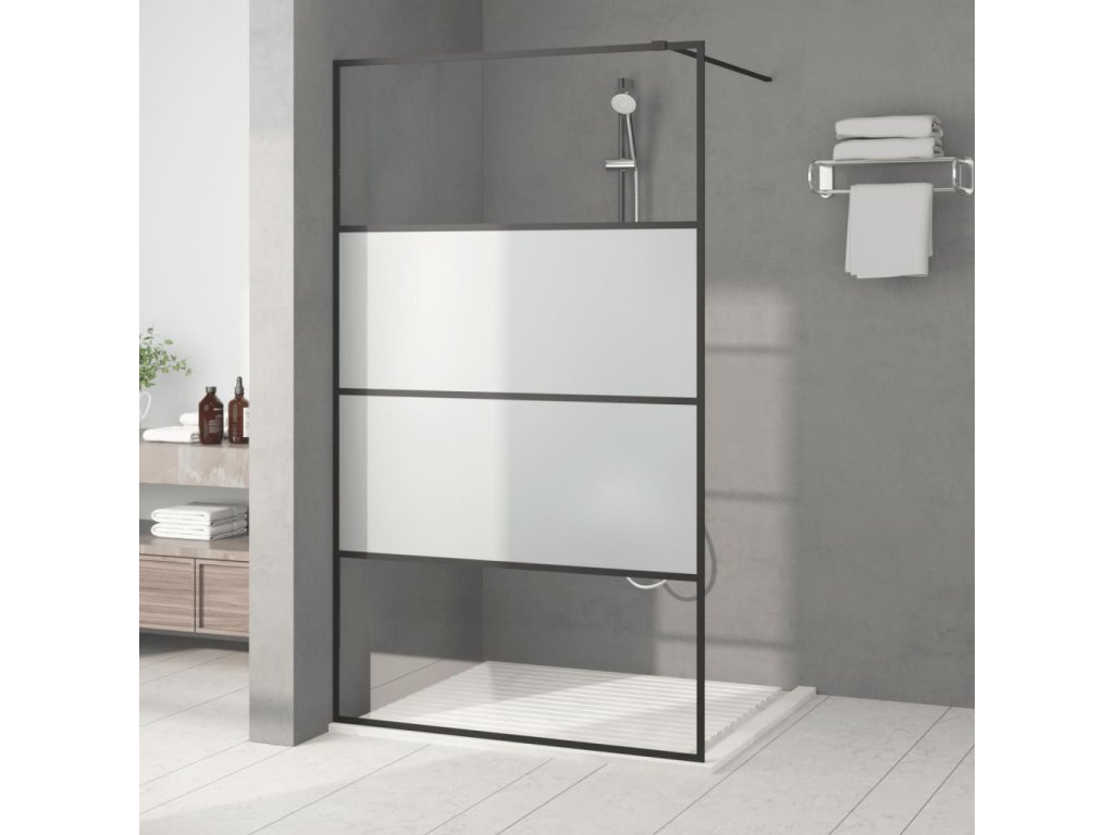 Sprchová zástěna walk-in černá 115x195 cm napůl mléčné ESG sklo 152128