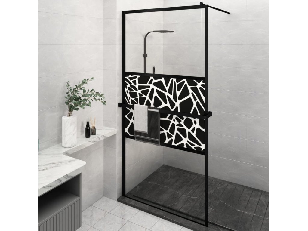 Zástěna do průchozí sprchy s policí černá 115x195 cm ESG/hliník 3185484