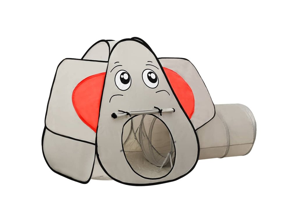 - Sloní design: Dětský stan má motiv slona a děti si mohou hrát uvnitř celé hodiny. Mohou prolézat tunelem a hrát si v tomto království a popustit uzdu své tvorbě a fantazii.