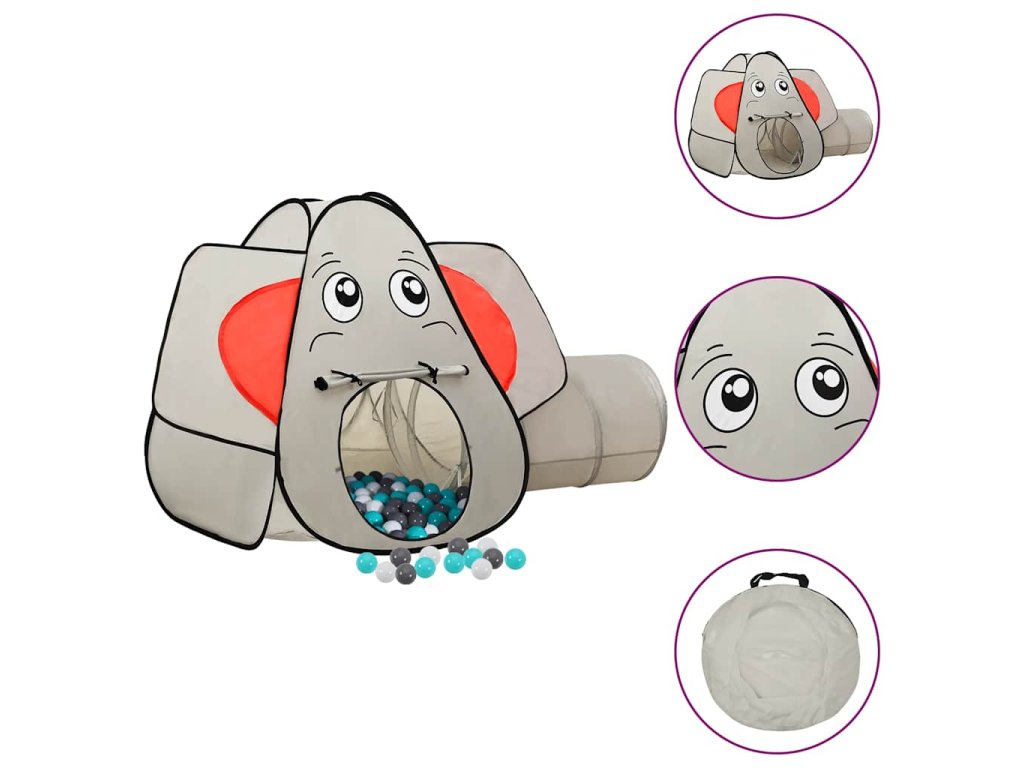 Dětský stan na hraní motiv slona s 250 míčky šedý 174x86x101 cm 3107740