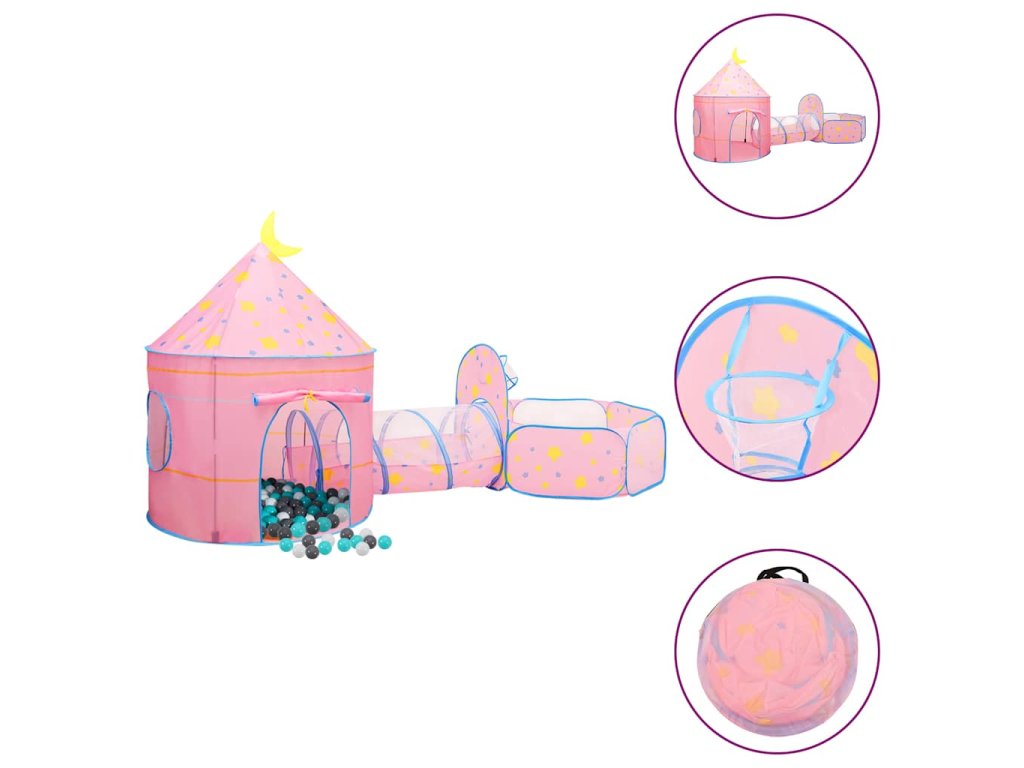Dětský stan na hraní s 250 míčky růžový 301 x 120 x 128 cm 3107737
