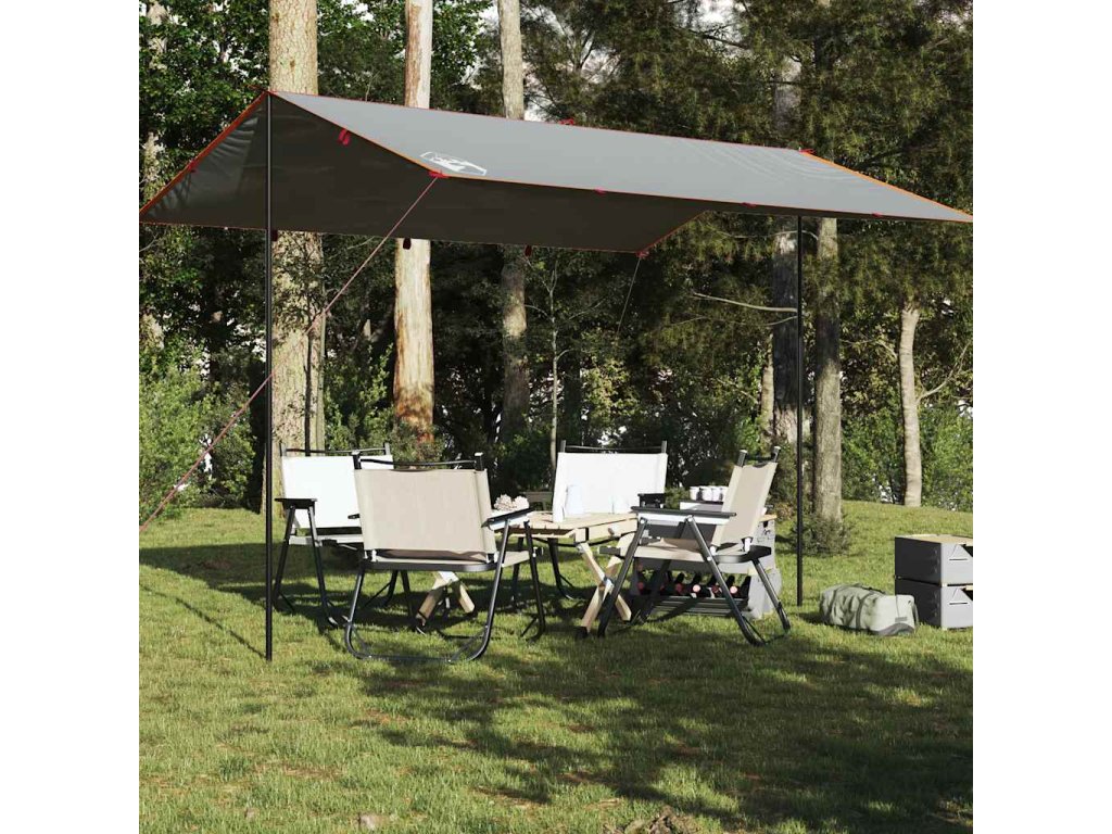 Kempingová plachta šedá a oranžová 400 x 294 cm nepromokavá 94663
