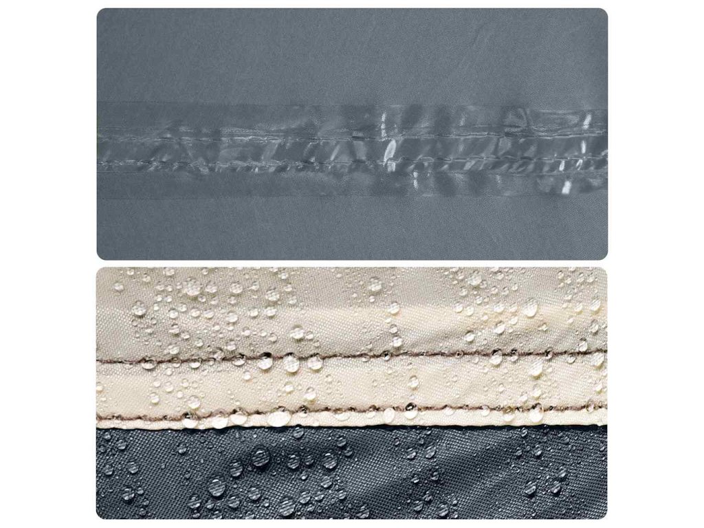 - Odolný taftový materiál: Tato plachta je vyrobena z taftové tkaniny s PU povlakem, je nepromokavá a odolná proti větru. Podlepené švy také účinně zabraňují pronikání dešťové vody, a pomáhají tak udržet suchý a pohodlný interiér.