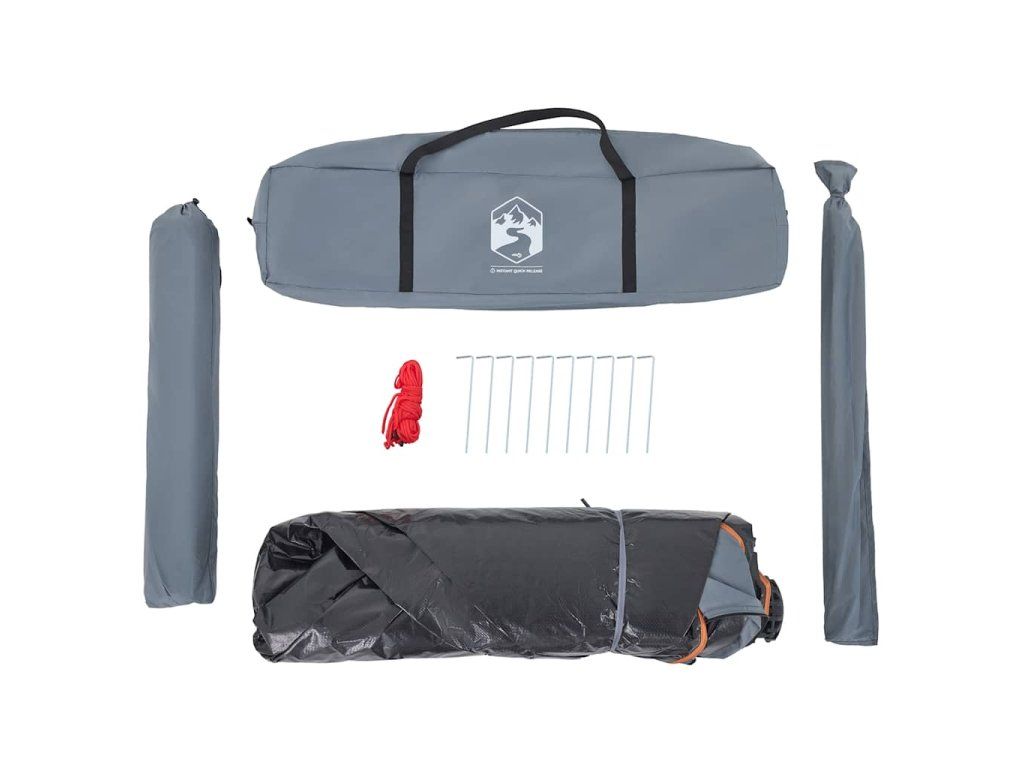 - Tyče pro stříšku jsou součástí balení: Tento kempingový stan obsahuje tyče pro stříšku proti slunci, které umožňují snadno podepřít vchodové dveře a vytvořit tak stříšku. Nyní si můžete vychutnávat skvělou přírodu a zároveň zůstat ve stínu!