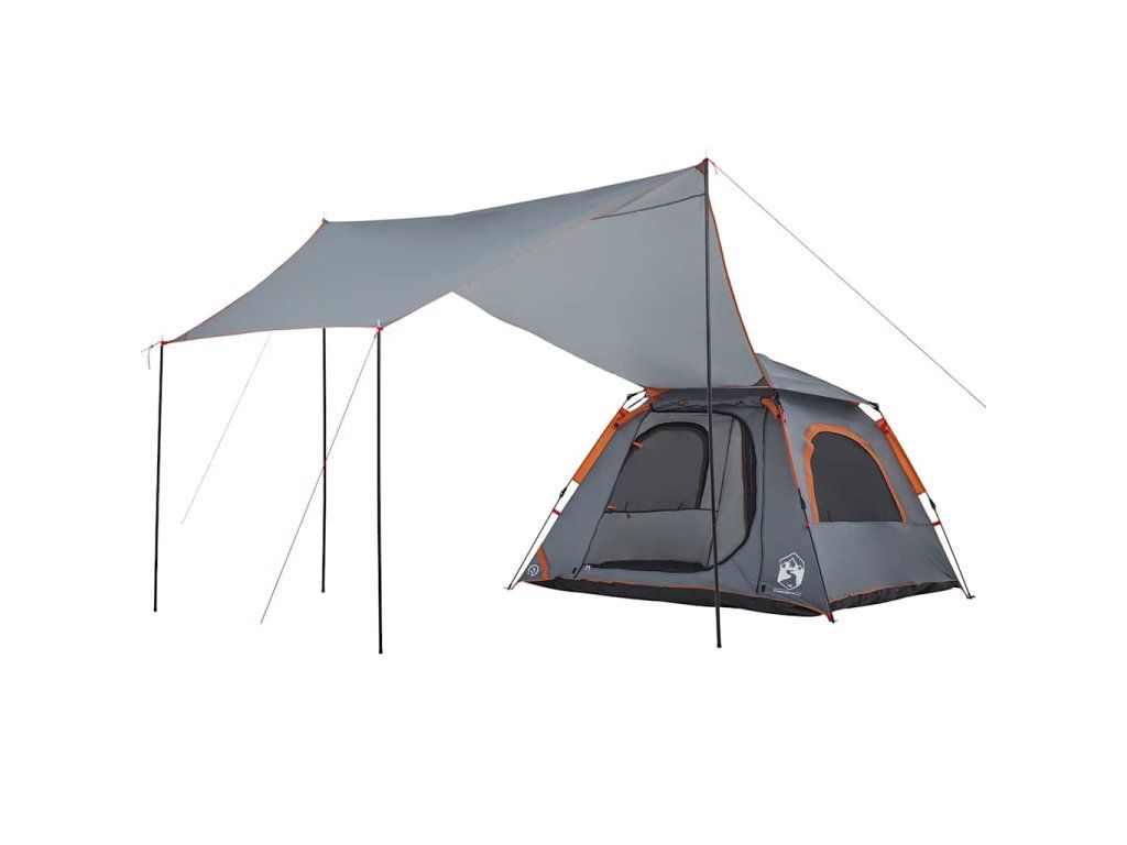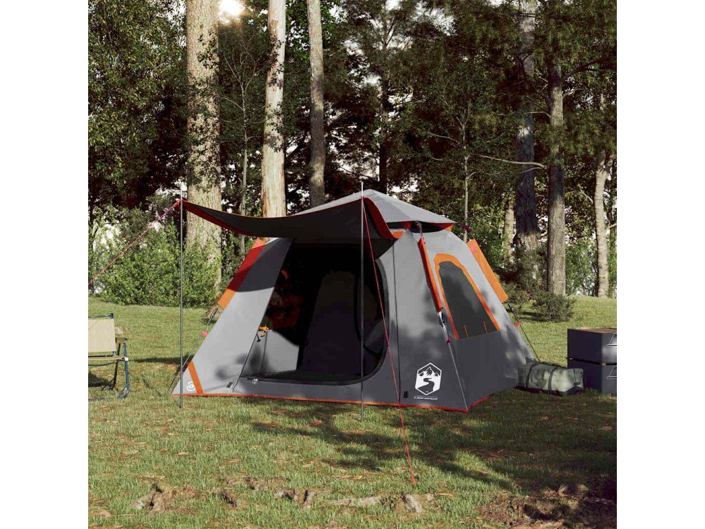 Kempingový stan kupole 4 osoby šedý a oranžový rychloupínací 4004145