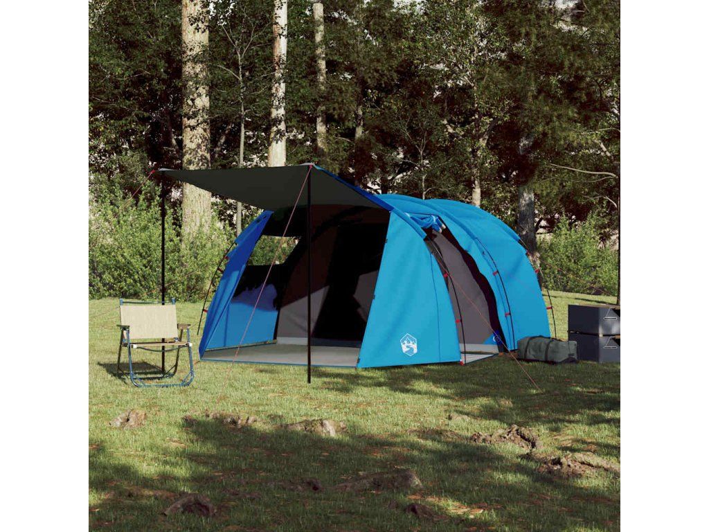 Kempingový stan tunel pro 4 osoby modrý nepromokavý 94398