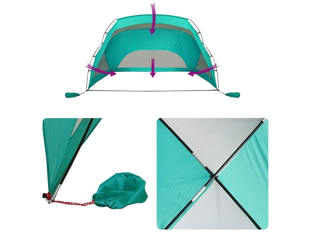 Tento plážový stan vám a vašim přátelům poskytne útulný úkryt v horkém létě nebo jej můžete použít jako přístřešek nad pískovištěm a brouzdalištěm.