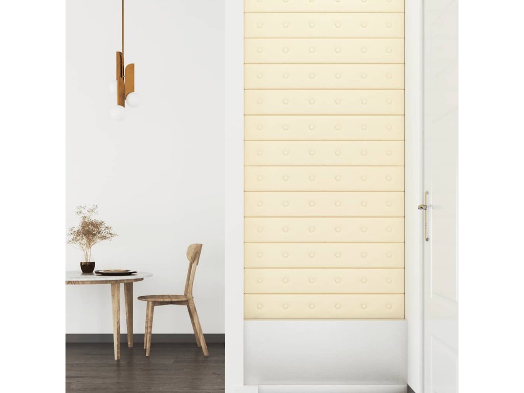Nástěnné panely 12 ks krémové 90 x 15 cm umělá kůže 1,62 m² 343996