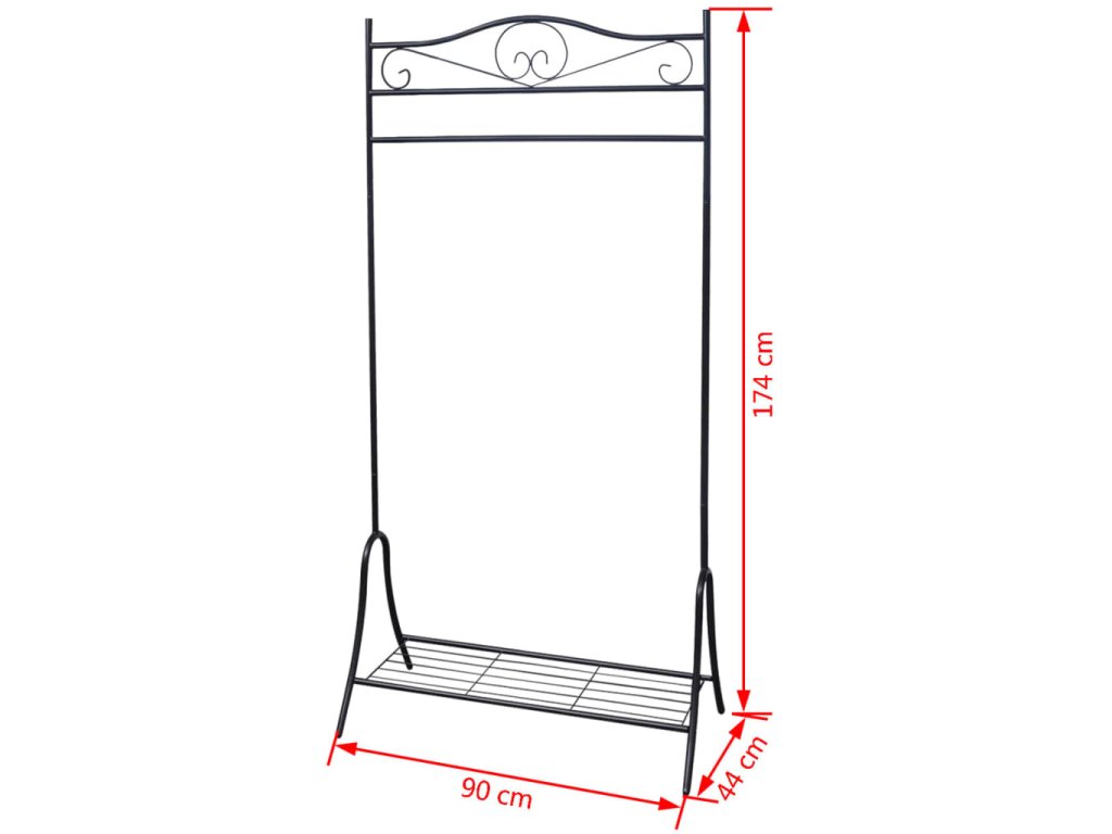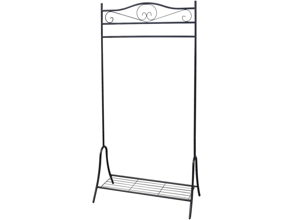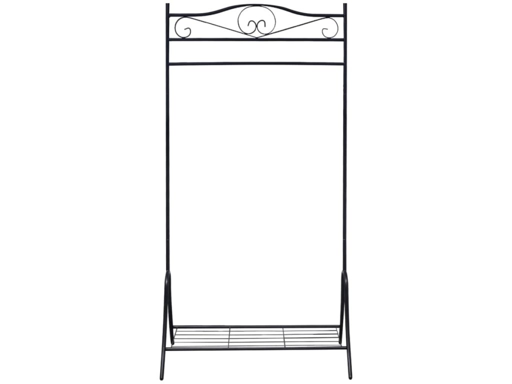 Díky elegantním ornamentálním detailům je tento věšák na šaty stejně tak dekorativní, jako je praktický. Tento věšák na oděvy má robustní ocelovou konstrukci, takže je zároveň lehký i pevný. Police na dně se dá používat k ukládání bot nebo košíků.