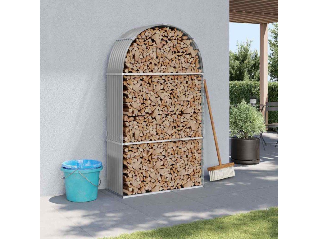 Stojan na dřevo světle šedý 120 x 45 x 210 cm pozinkovaná ocel 364552