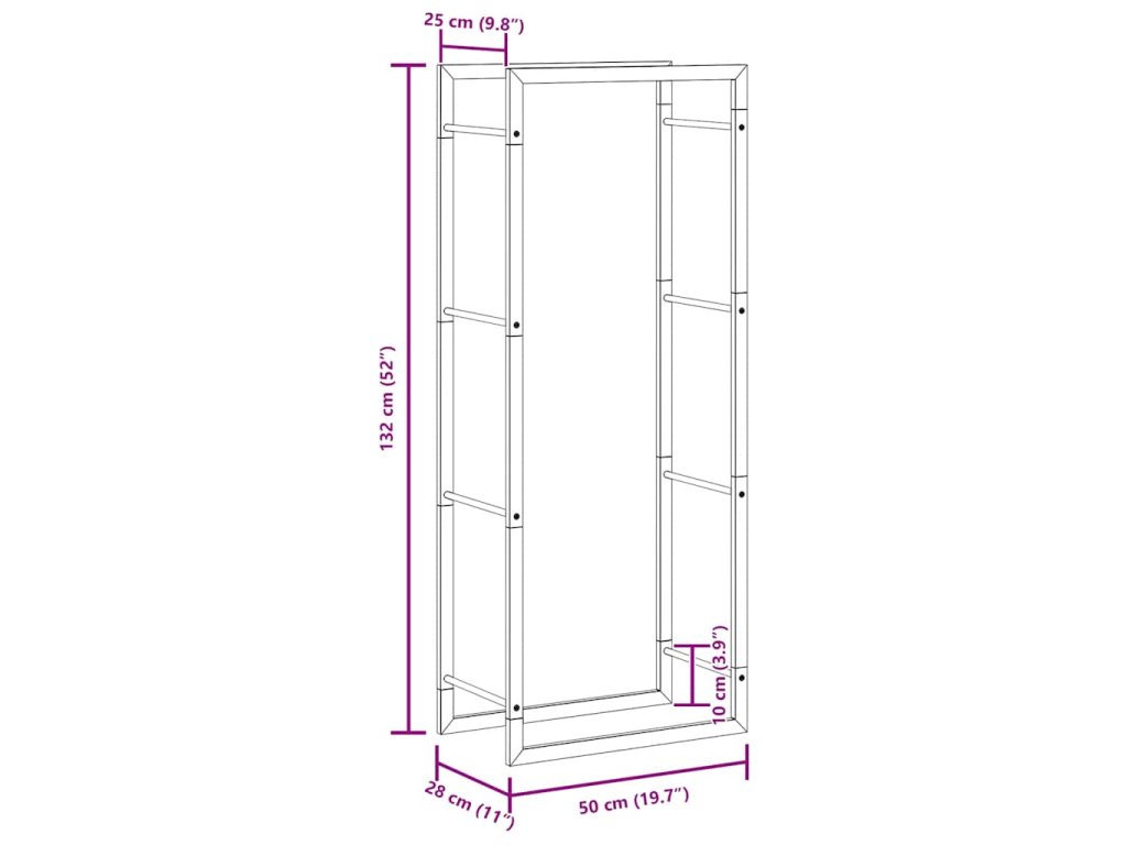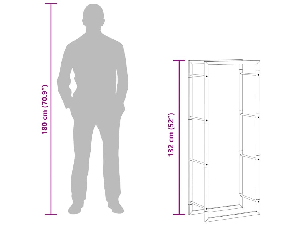 - Odolný materiál: Tento stojan na polena je vyroben z nerezové oceli, která je trvanlivá, pevná a odolná proti korozi.