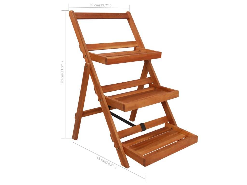 Stojan na květiny je vyroben z masivního akáciového dřeva, které bylo ošetřeno přírodním olejem. Dřevo tak získalo svůj rafinovaný vzhled. Tento stojan se skládá ze 3 polic, které nabízejí vašim květinám a rostlinám dostatek prostoru, aby mohly prospívat a vykvést do krásy. Stojan na rostliny můžete též sklopit a snadno uložit, pokud jej právě nepotřebujete.