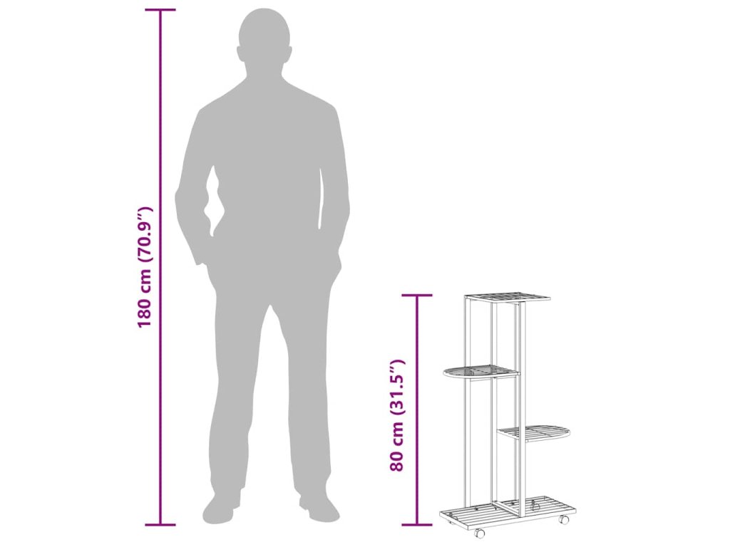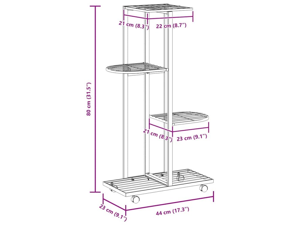 4patrový stojan na květiny s kolečky 44x23x80 cm černý železo 343115
